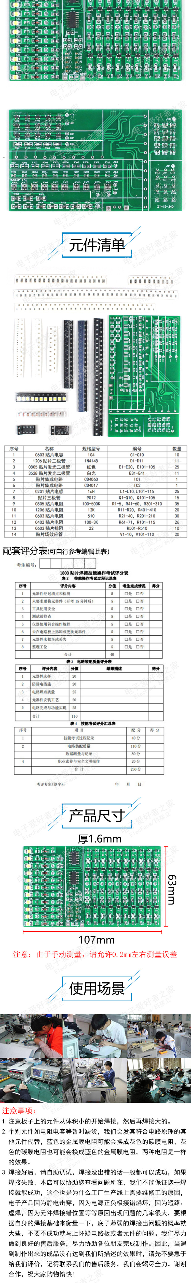 (Разбросанные детали) 240 Проточная лампа Патч Электронные компоненты SMT тренировочные навыки.