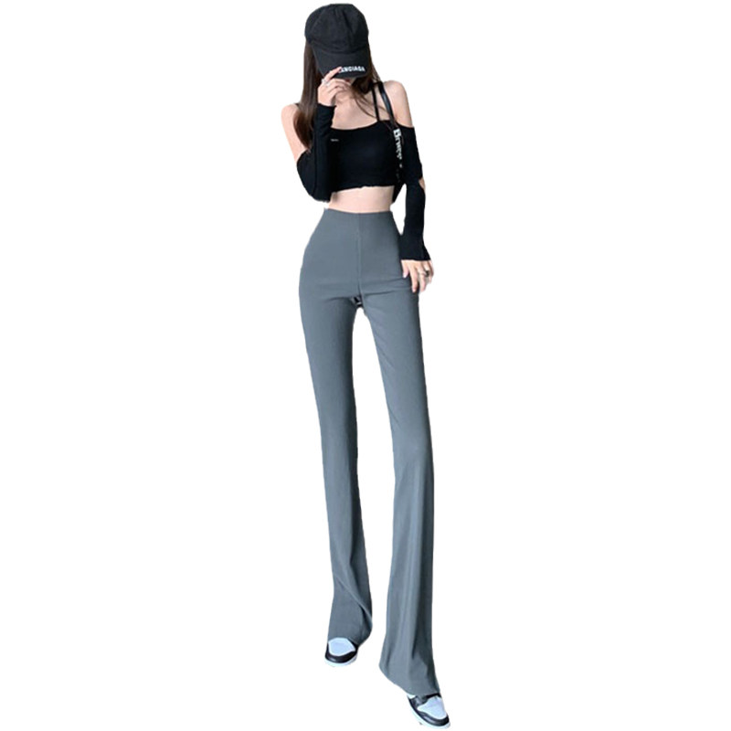 Шелковые тонкие штаны, приталенный костюм, черные штаны-клёш, популярно в интернете, защита от солнца, высокая талия