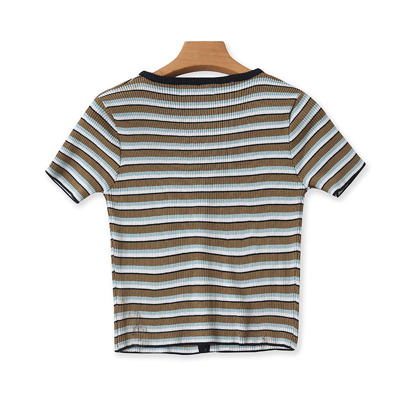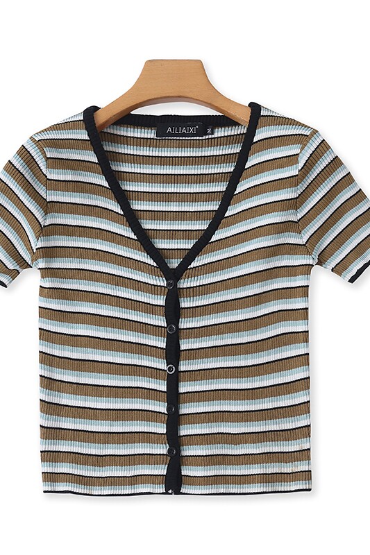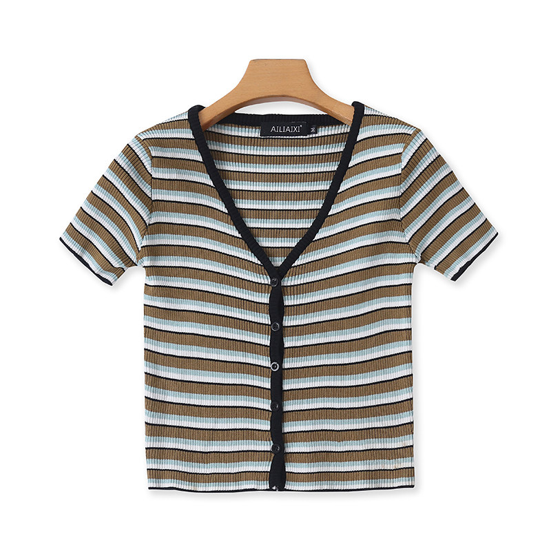 Шелковая эластичная трикотажная летняя футболка с коротким рукавом, короткий кардиган, V-образный вырез, облегающий крой, высокая талия