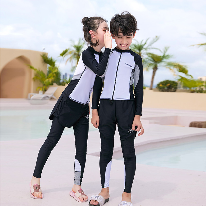 Модный детский купальник для мальчиков, раздельный солнцезащитный крем, комплект, лонгслив с молнией, 3 предмета