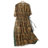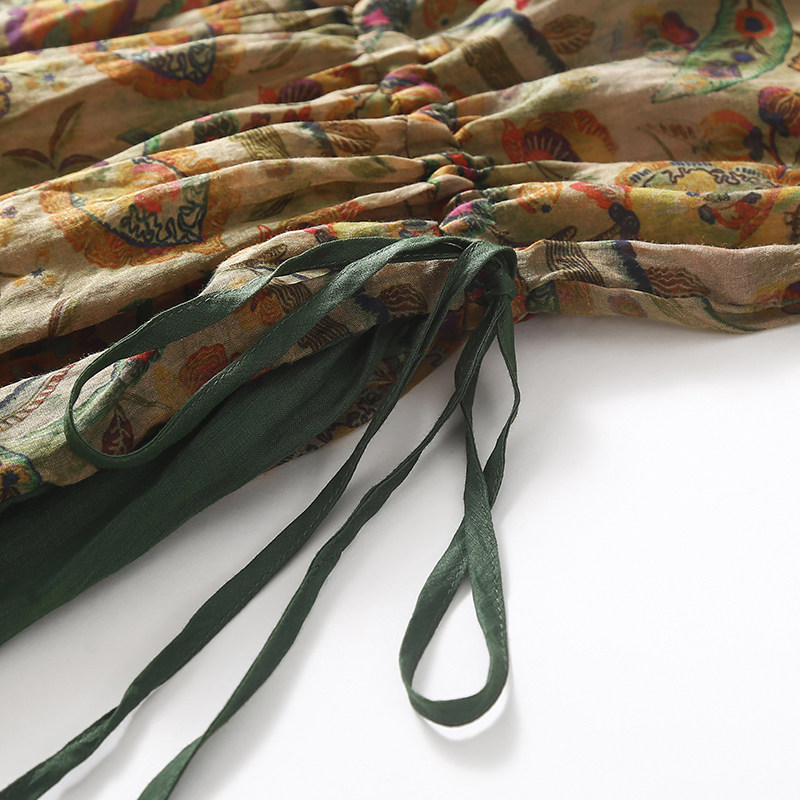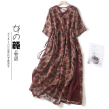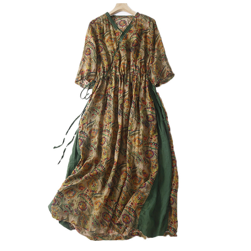 Приталенный тонкий корсет, платье большого размера, длинная юбка, свободный крой, из хлопка и льна, V-образный вырез, короткий рукав, с рукавом