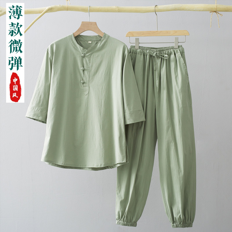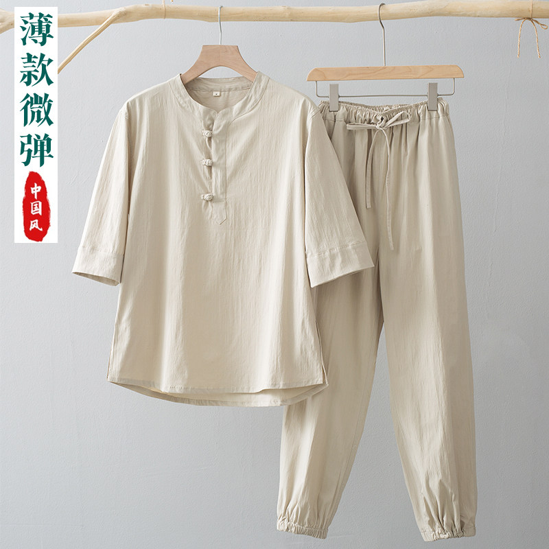 Летняя тонкая футболка с коротким рукавом, комплект, китайский стиль, V-образный вырез