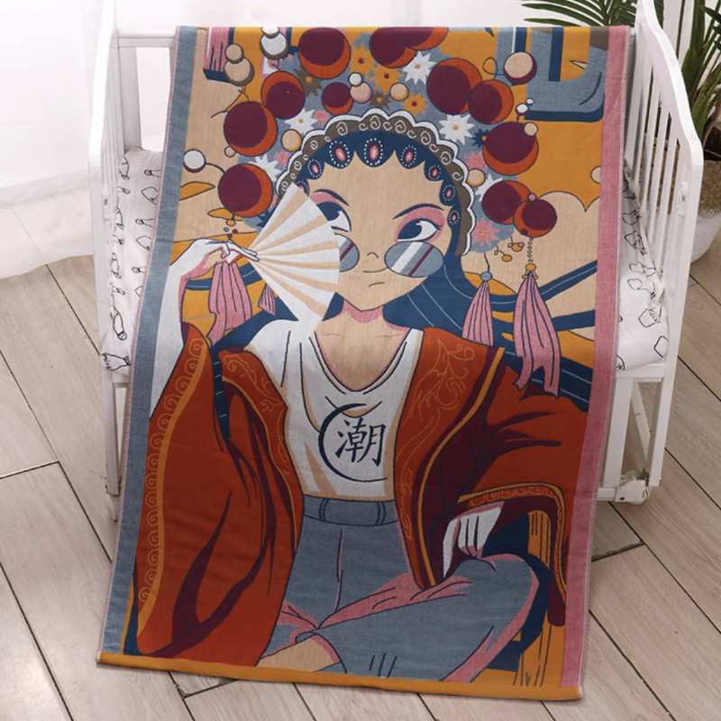 Хлопковое марлевое мультяшное мягкое быстросохнущее банное полотенце, 80×160см, хорошо впитывает воду