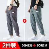 Мужские шелковые летние тонкие спортивные штаны, из хлопка и льна, свободный крой