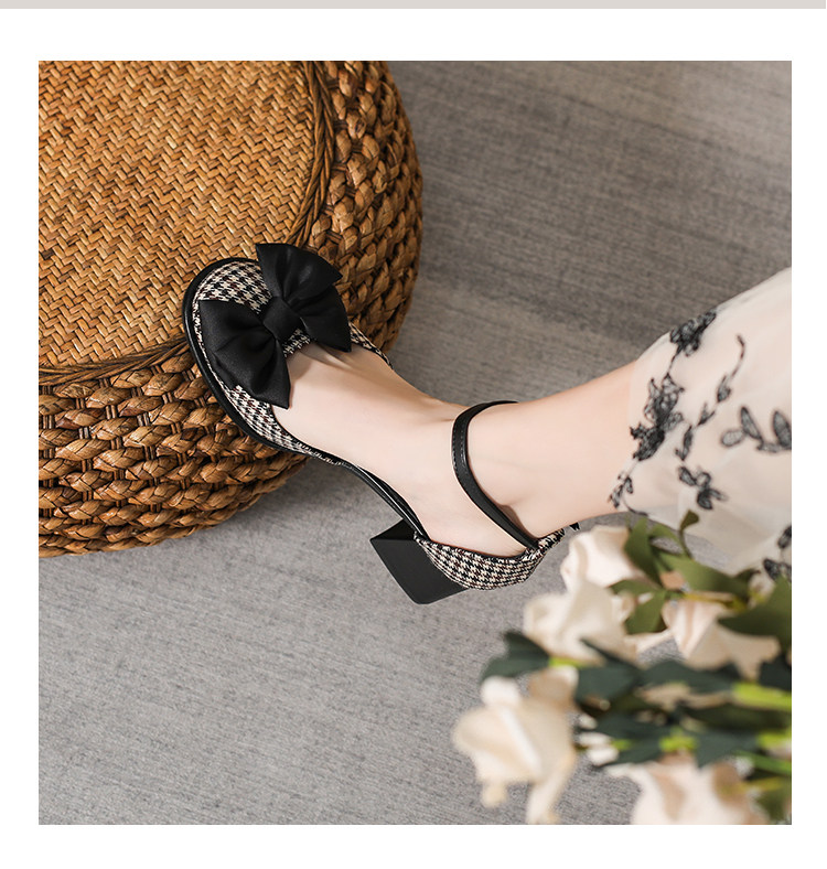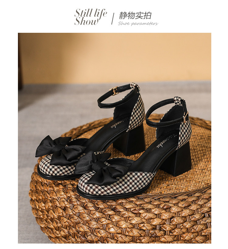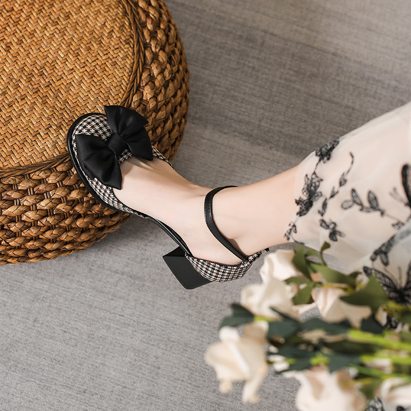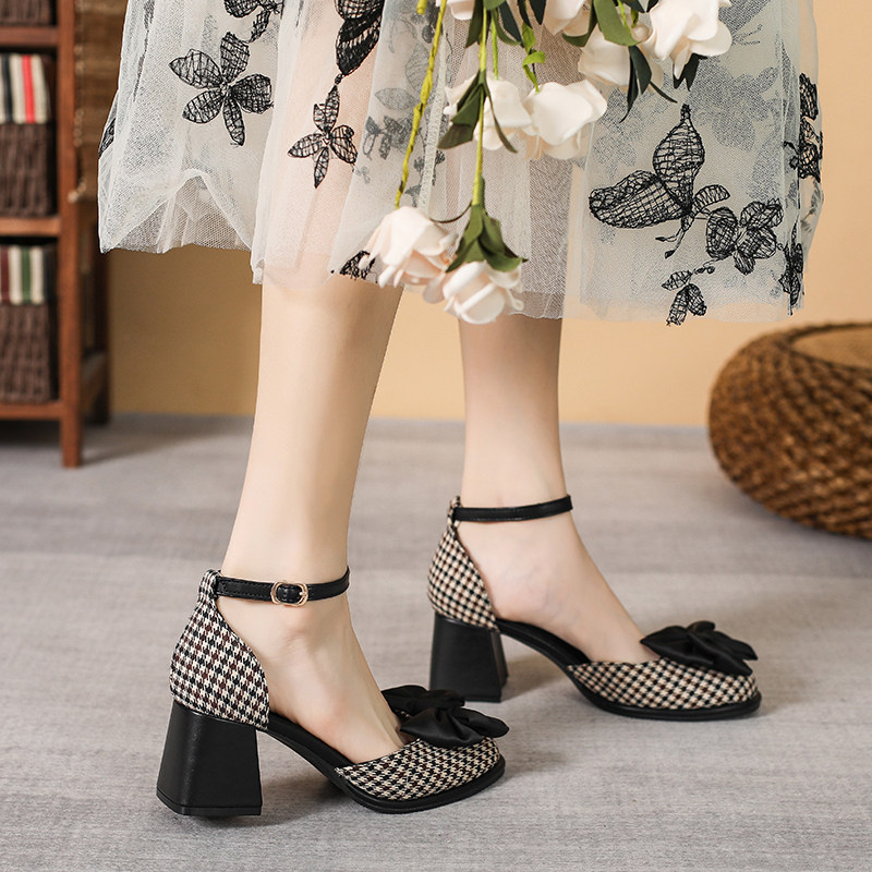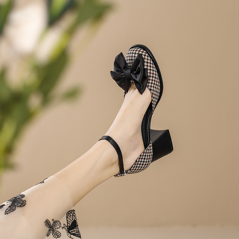 Baotou Sandals самка 2024 Новая весна и летняя круглая голова толстая каблука Мэризен высокая обувь Полая французская девочка маленькая каблука