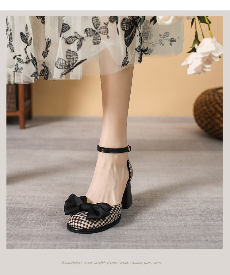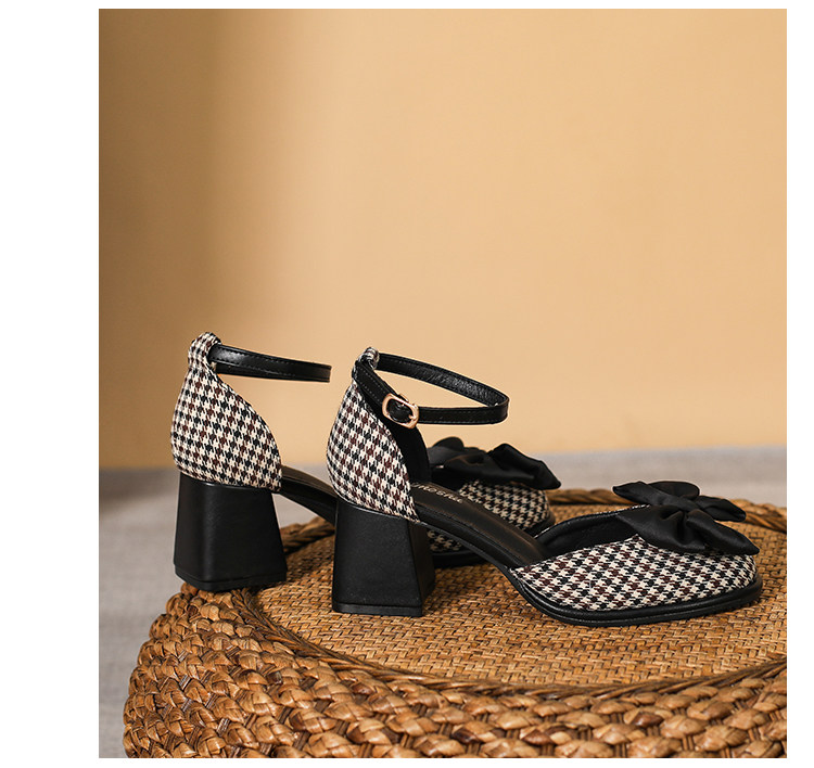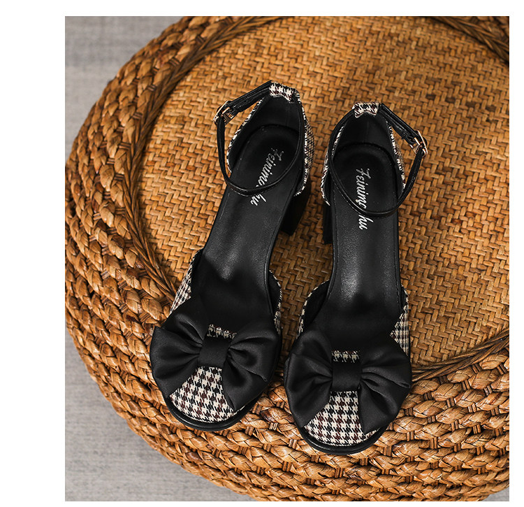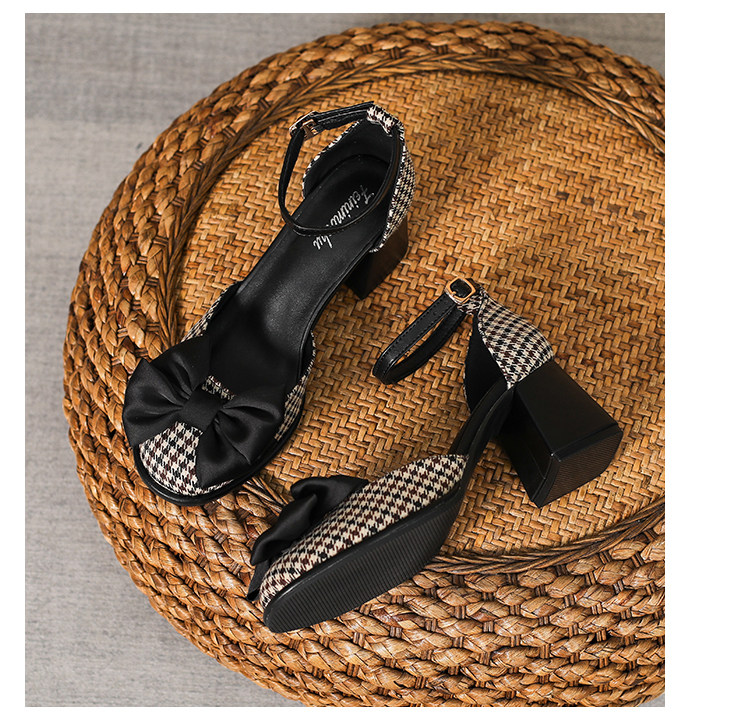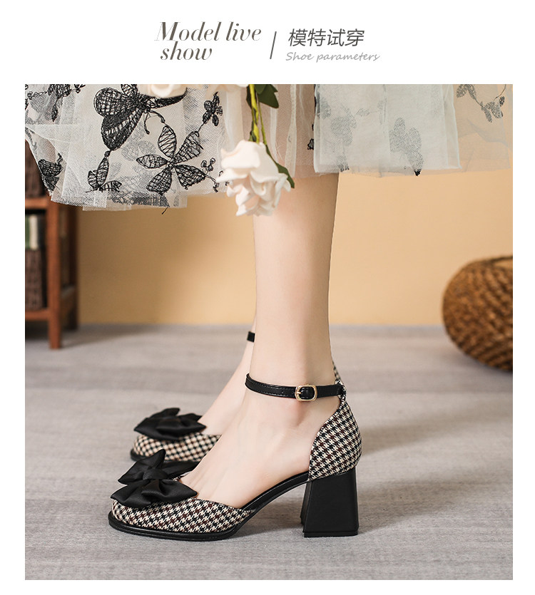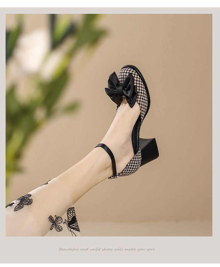 Baotou Sandals самка 2024 Новая весна и летняя круглая голова толстая каблука Мэризен высокая обувь Полая французская девочка маленькая каблука