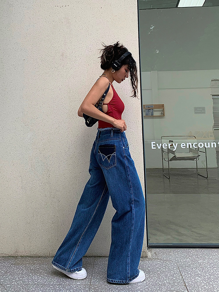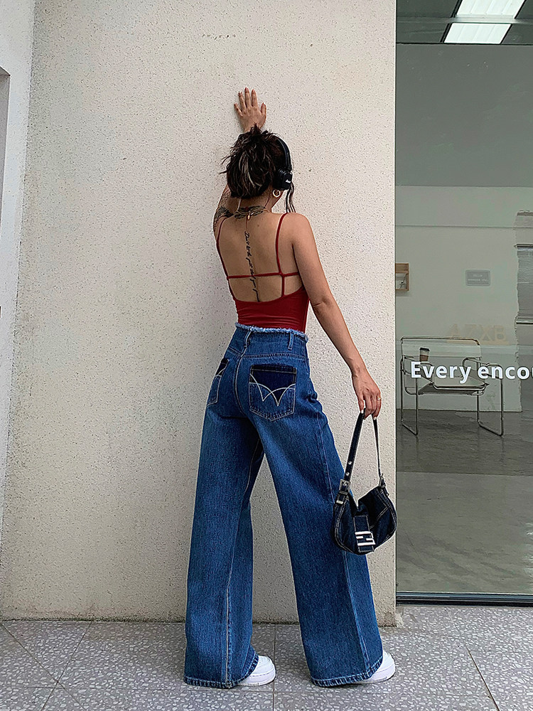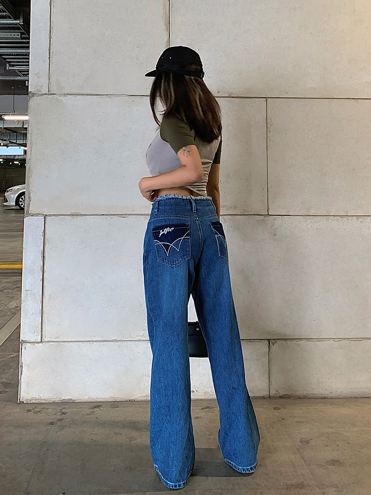 Дизайнерские прямые свободные джинсы, осенние штаны, свободный прямой крой, с вышивкой, высокая талия