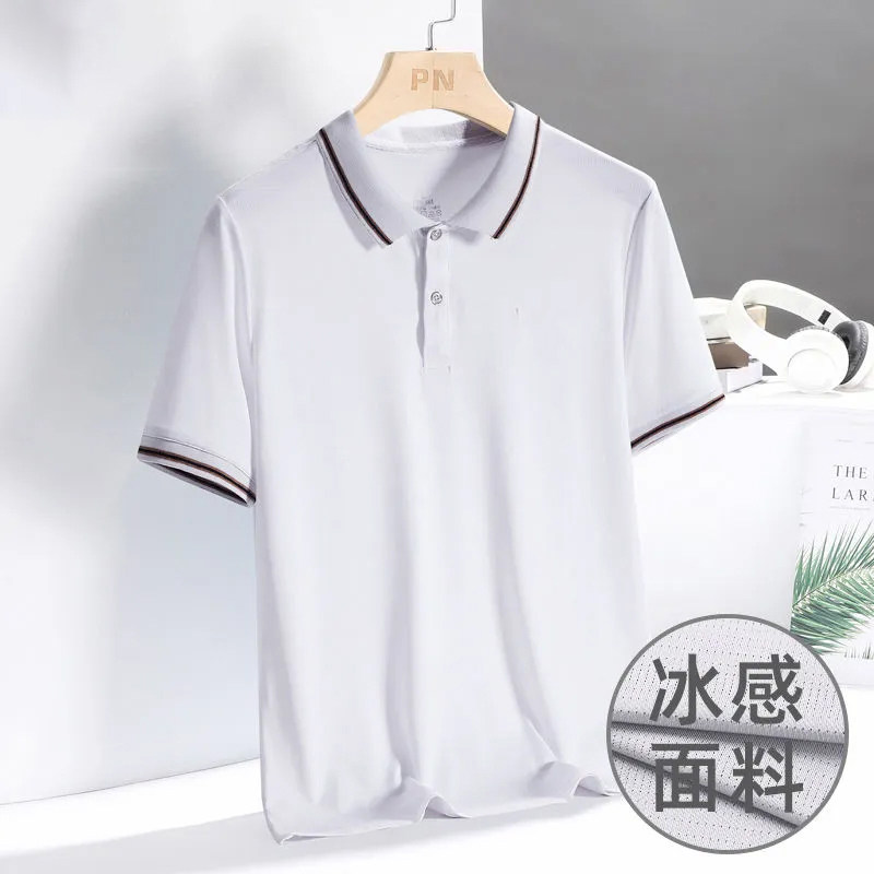 Летняя тонкая эластичная шелковая дышащая футболка polo, футболка с коротким рукавом для отдыха, облегающий крой