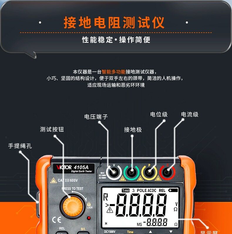 Тестер на земле резистора победы VC4105A с высокой точки зрения цифровой дрожь молнии.