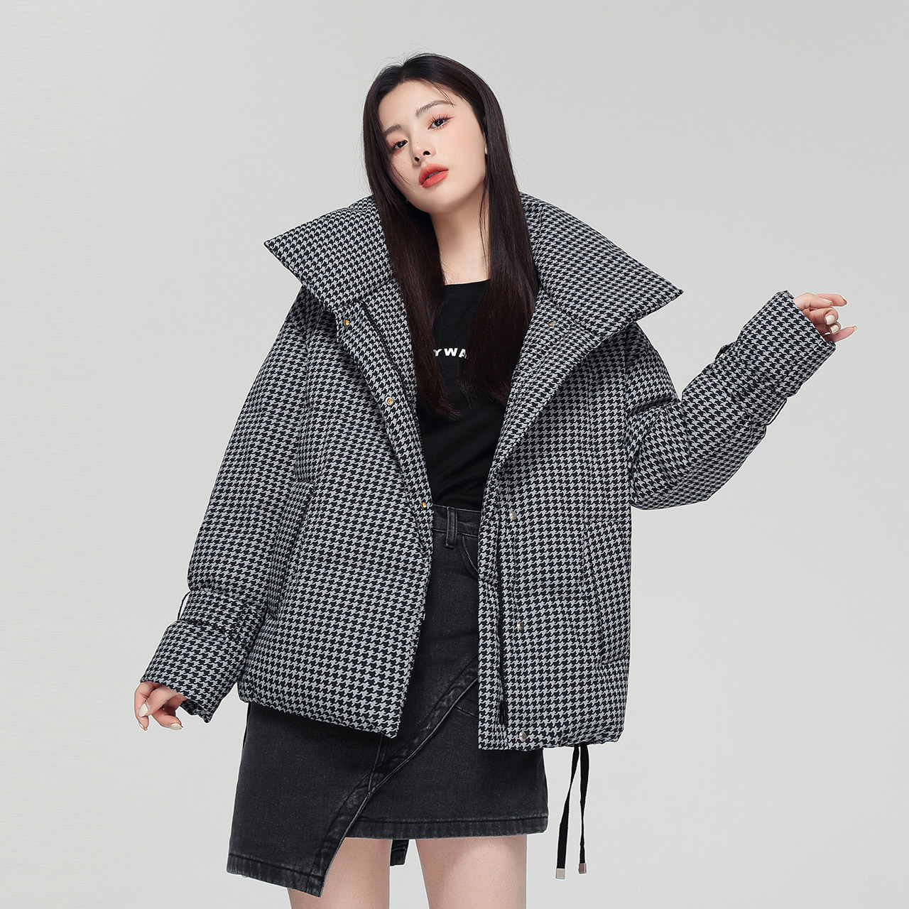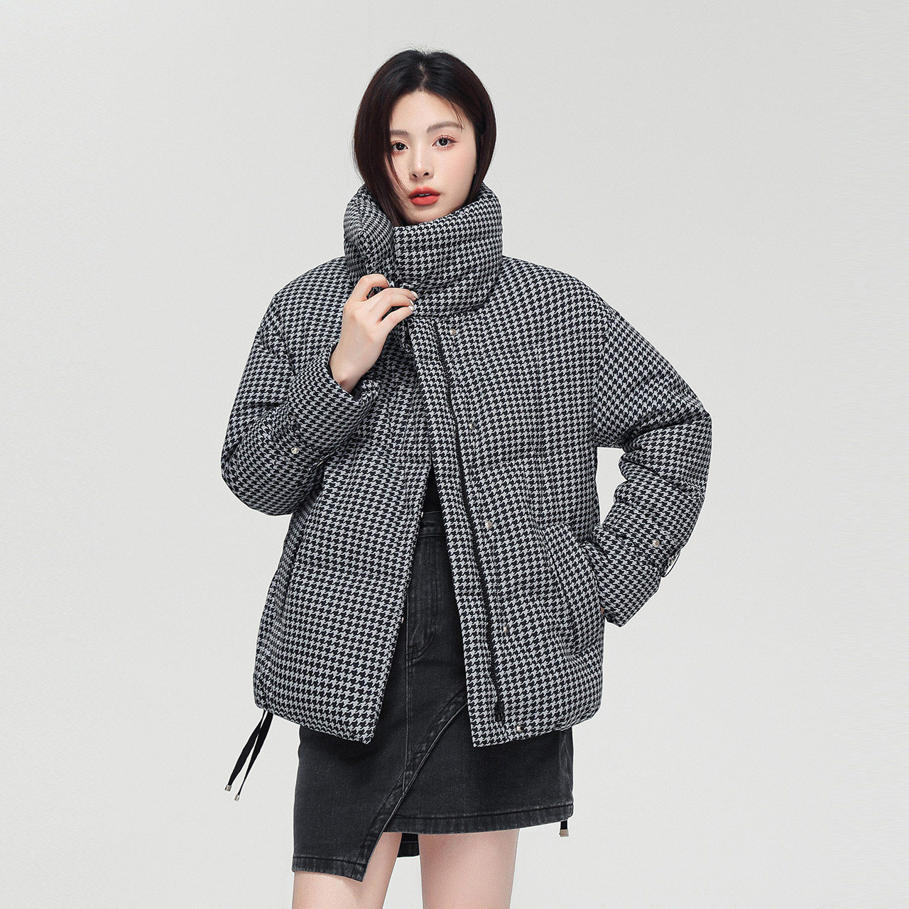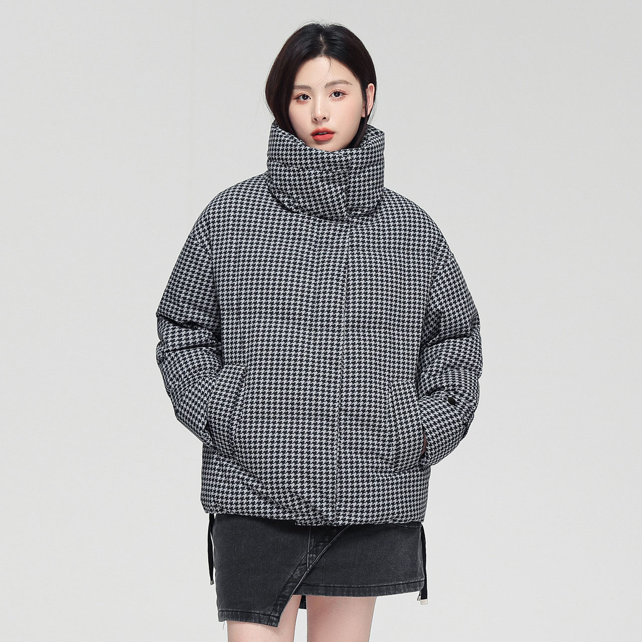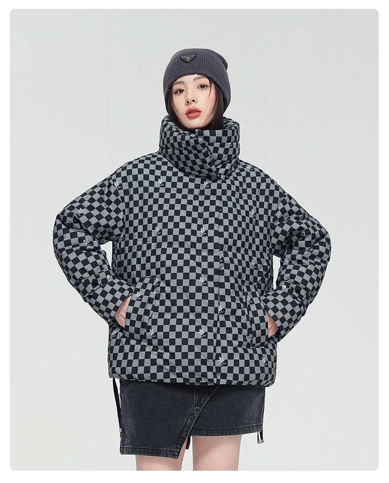 Демисезонный модный комфортный ветрозащитный пуховик, шахматы, новая коллекция
