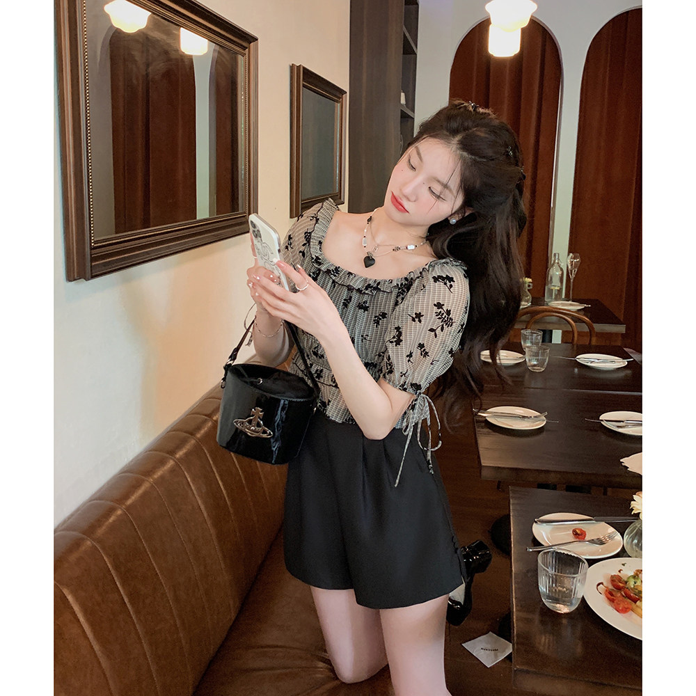 梅子熟了 Платье, короткая мини-юбка с круглым воротником, высокая талия, А-силуэт, рукава фонарики