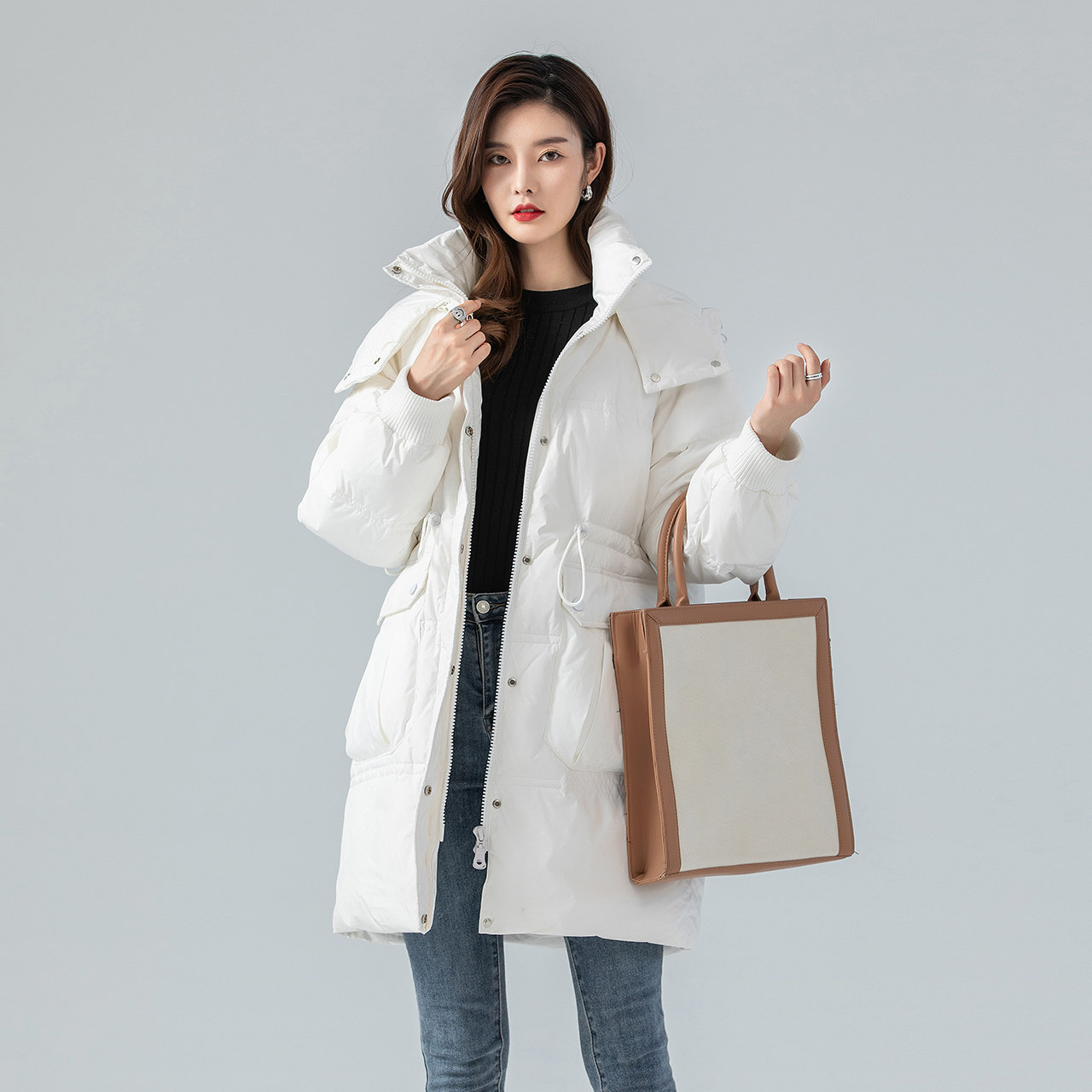 Демисезонный приталенный пуховик для отдыха, корсет, средней длины