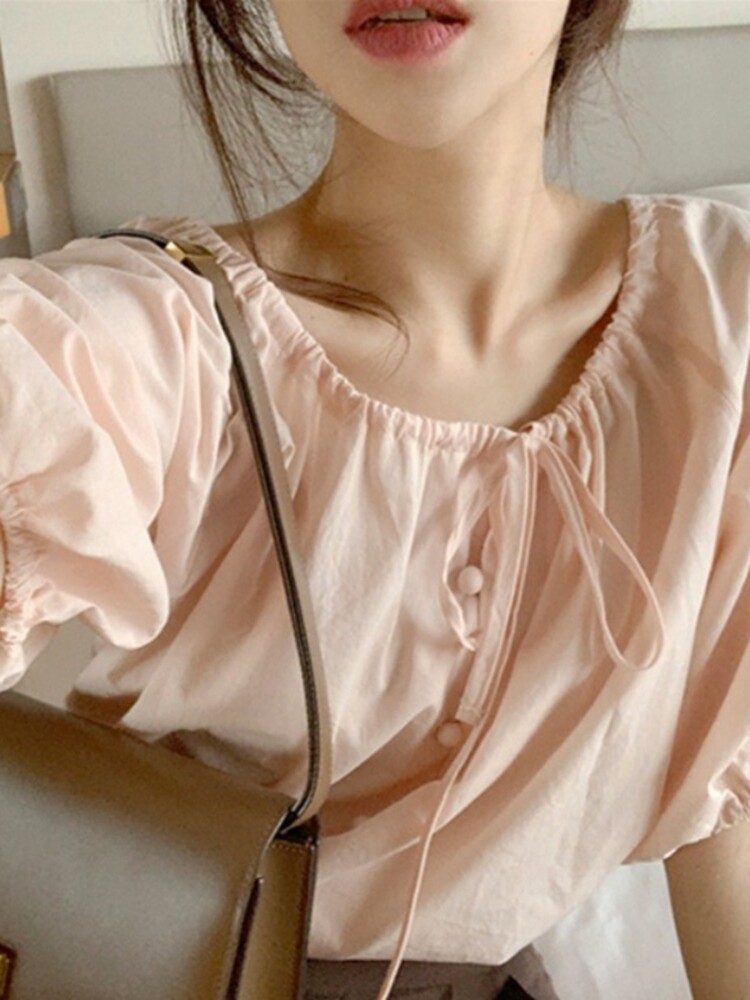 Летняя рубашка с круглым воротником, в корейском стиле, оверсайз