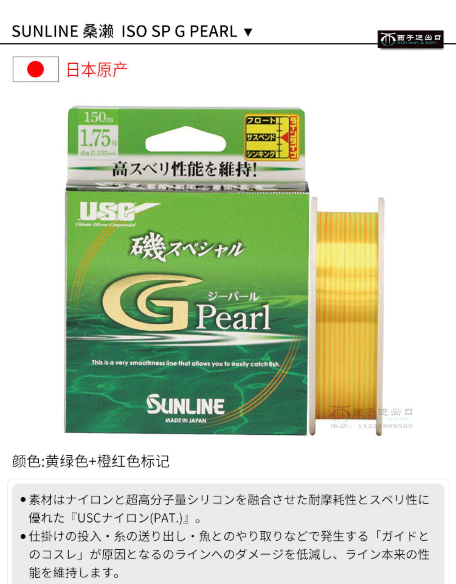 Импортированная из Японии рыболовная леска SUNLINE Kuangaseji SP G PEARL, полуплавающая подвесная основная леска, рыболовная леска
