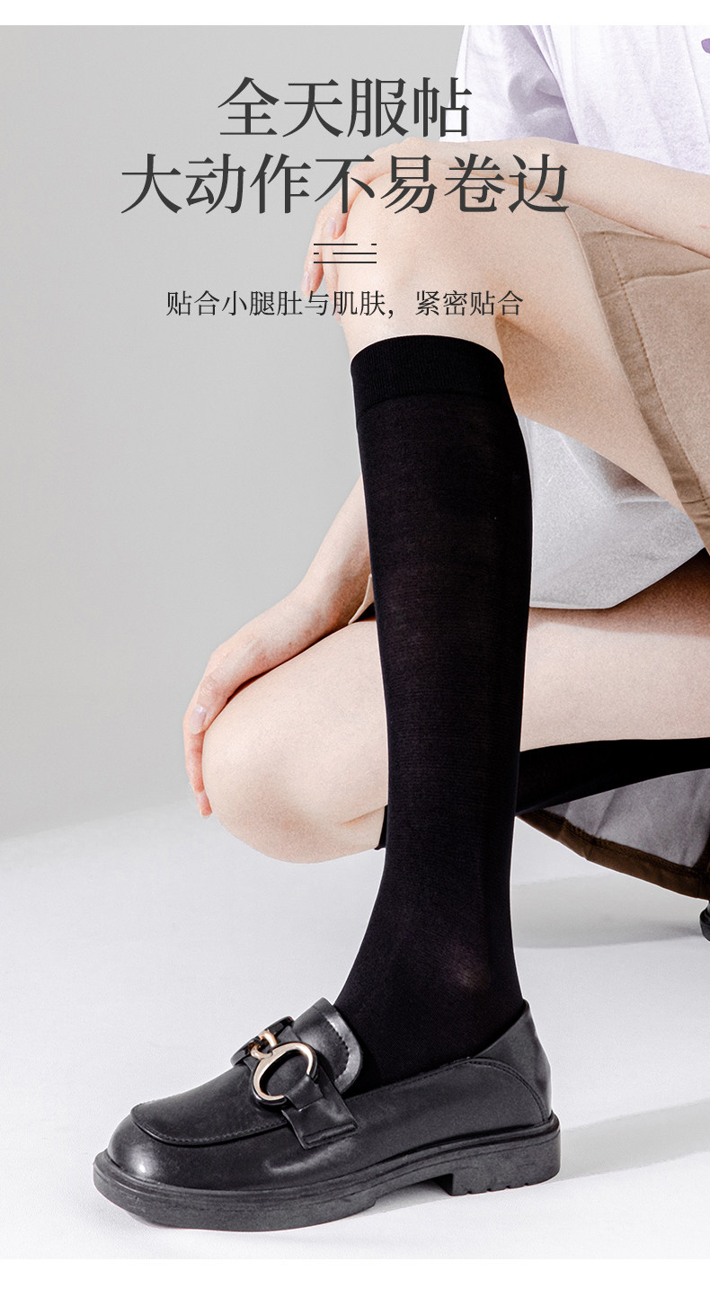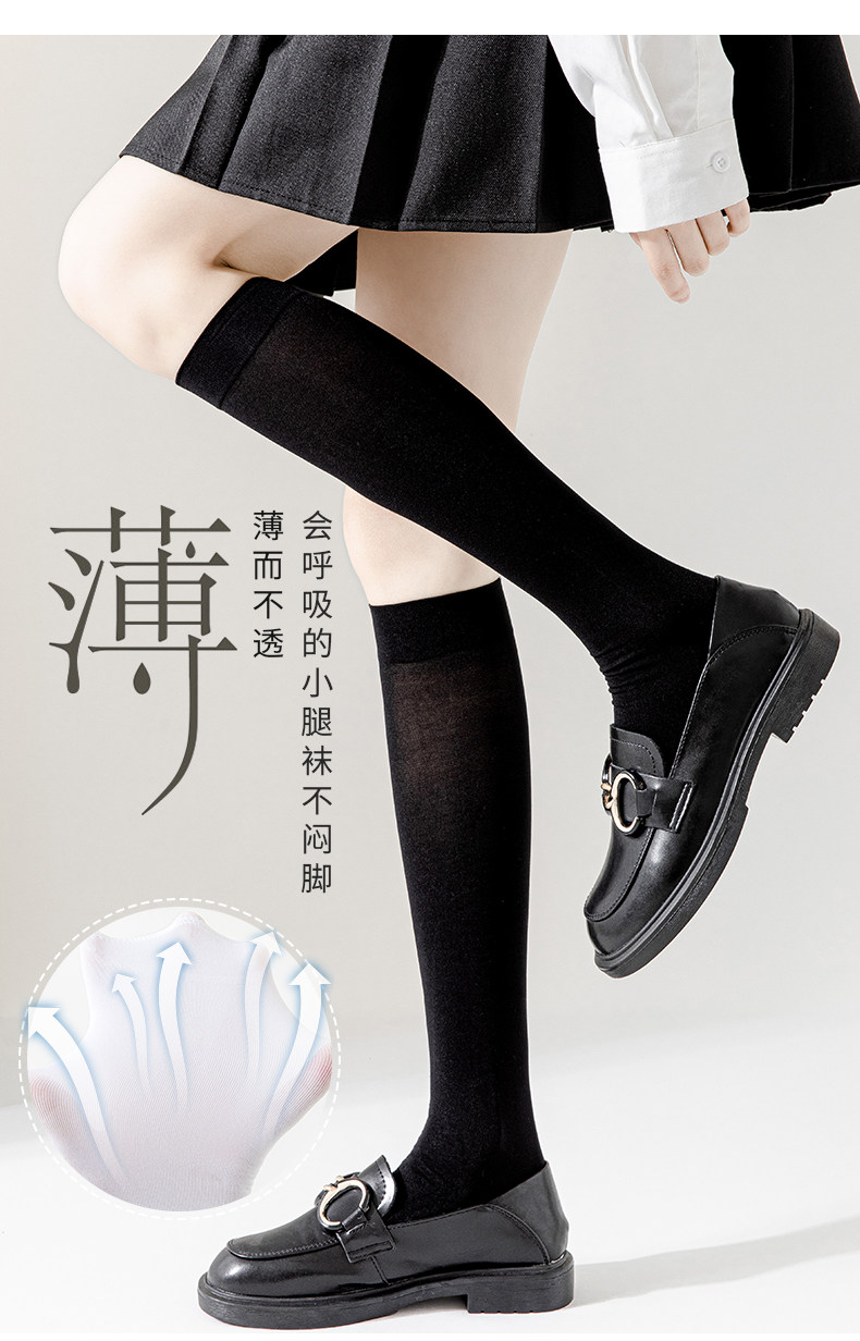 Носки, летние тонкие гольфы, черные шелковые колготки, средней длины