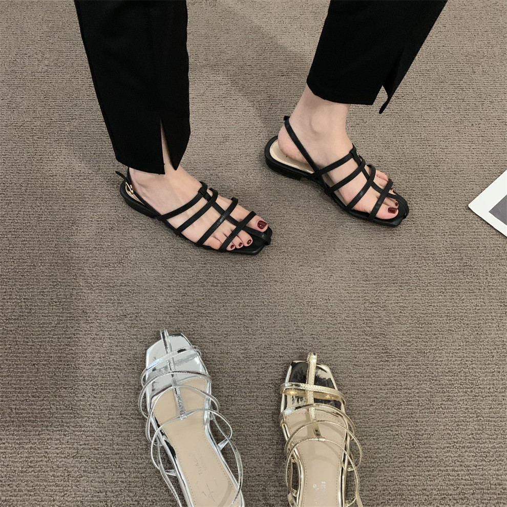 Слайдеры, летние тапочки, небольшие серебряные сандалии, французский ретро стиль, 2022