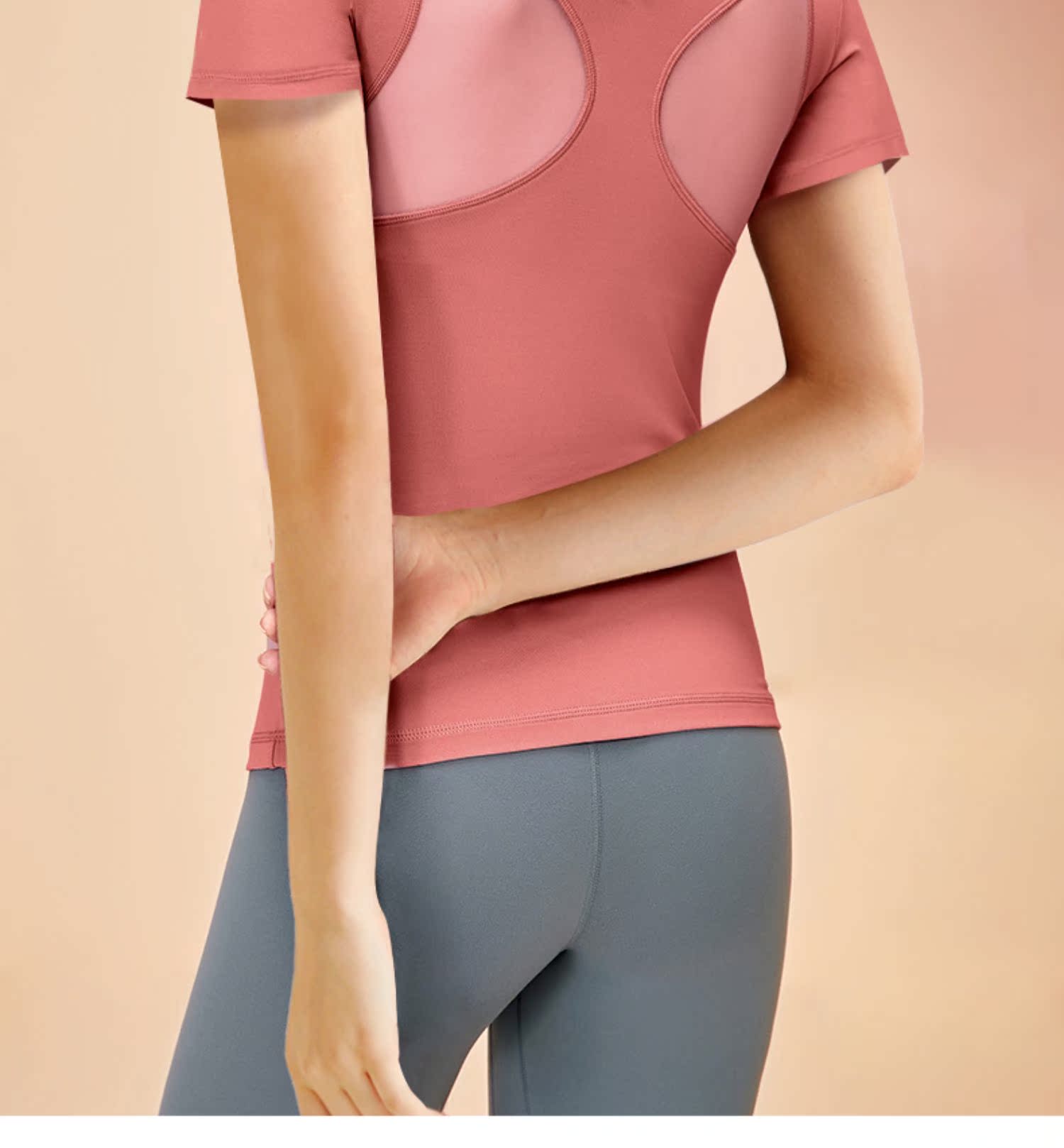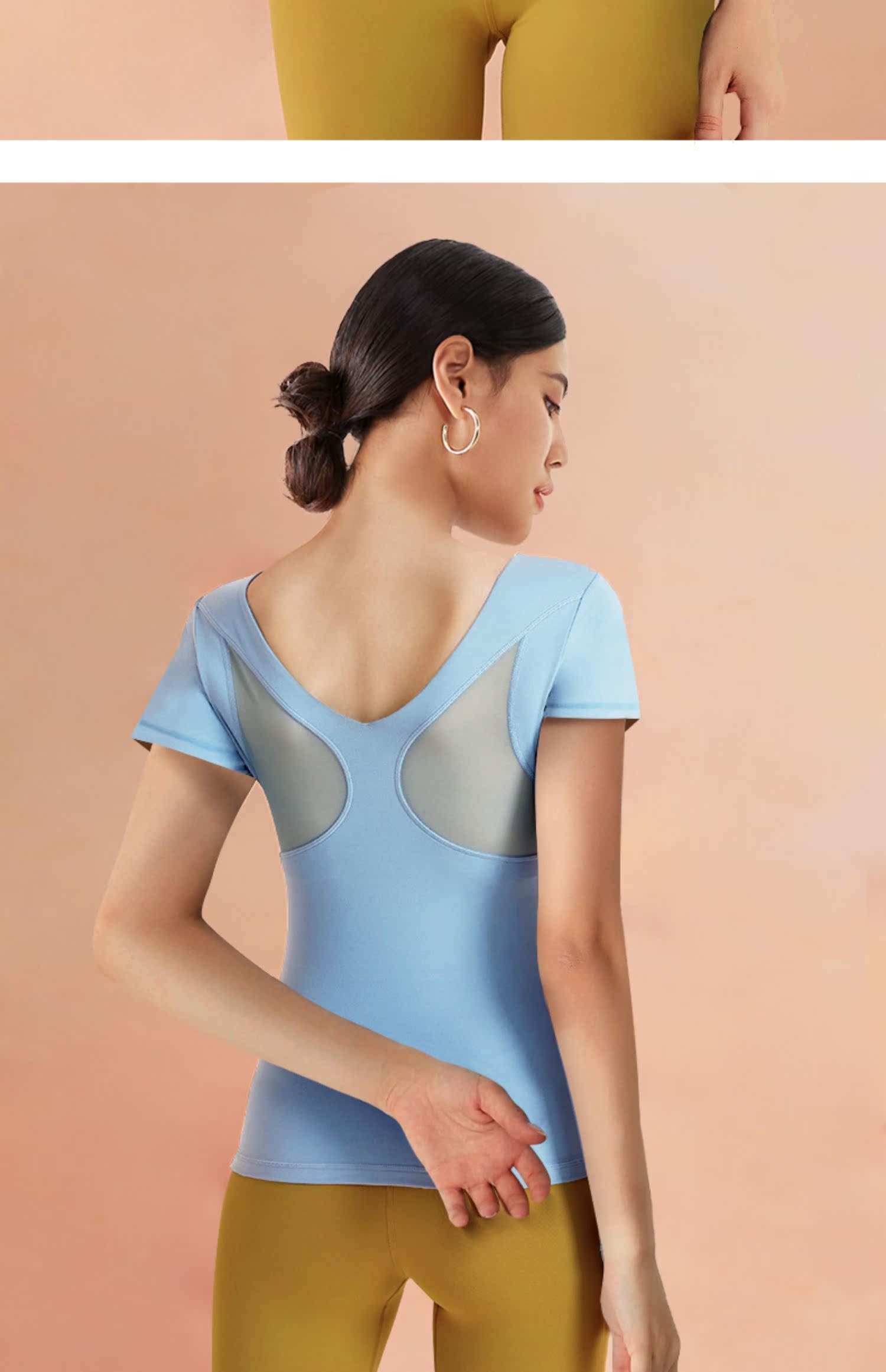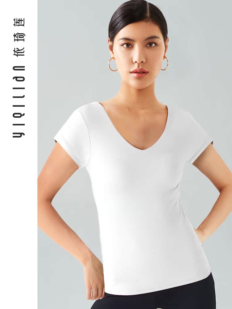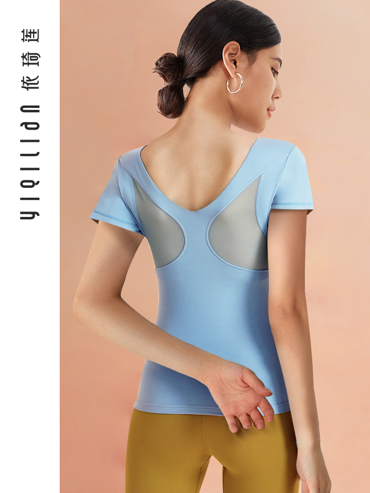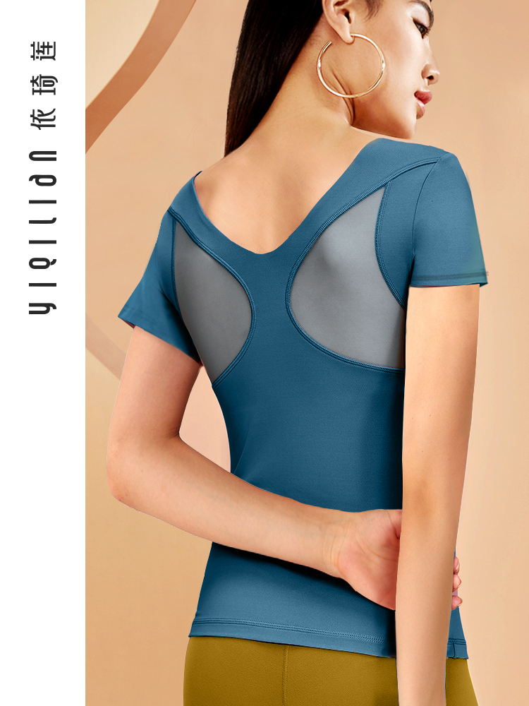 依琦莲 Одежда для йоги, спортивная футболка, облегающий крой, для бега, короткий рукав, красивая спина