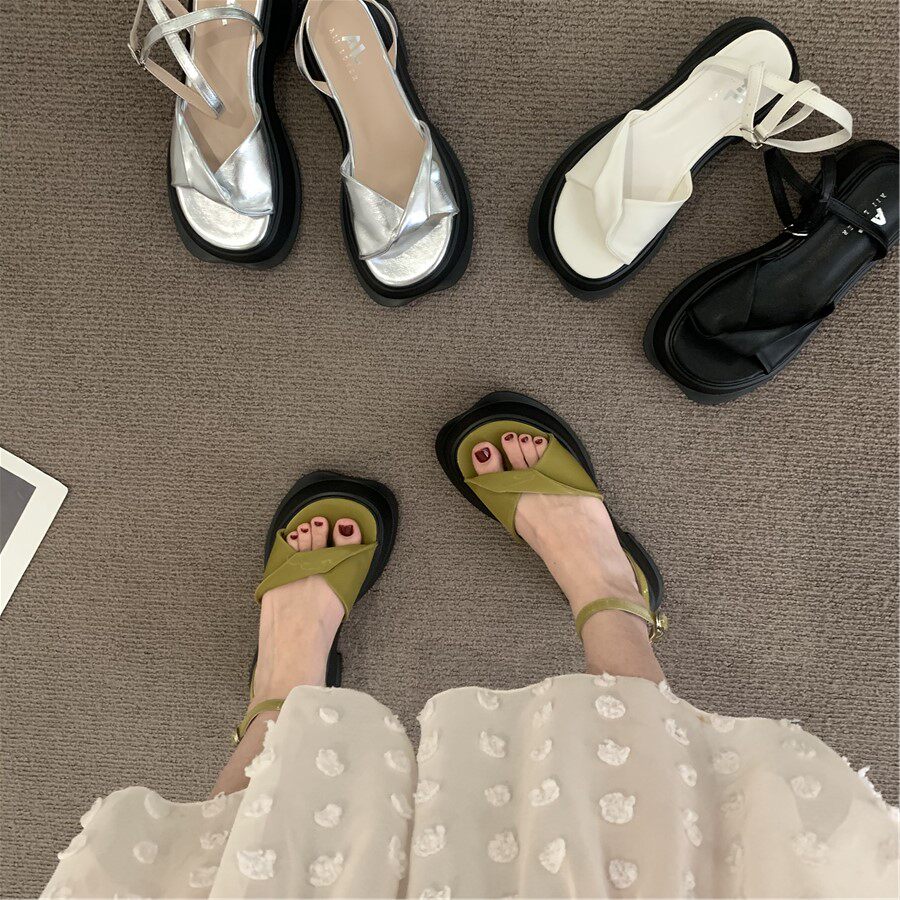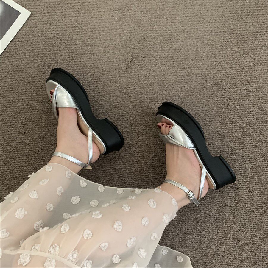 Небольшие высокие летние сандалии на платформе, летняя обувь, серебряные слайдеры в английском стиле, подходит для подростков, в британском стиле