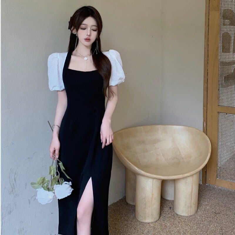 Дизайнерское платье, длинная юбка, большой размер, французский стиль, рукава фонарики, тренд сезона, с открытой спиной
