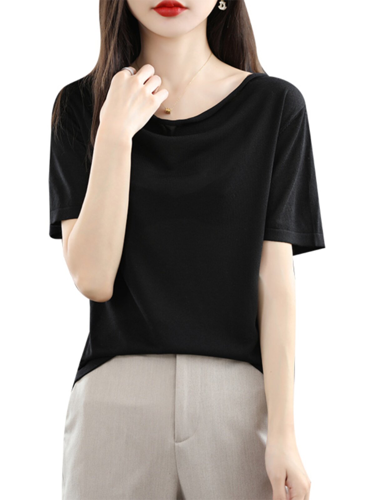 Летняя трикотажная короткая цветная футболка с коротким рукавом, свободный крой, городской стиль