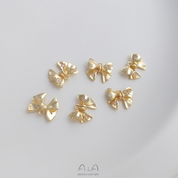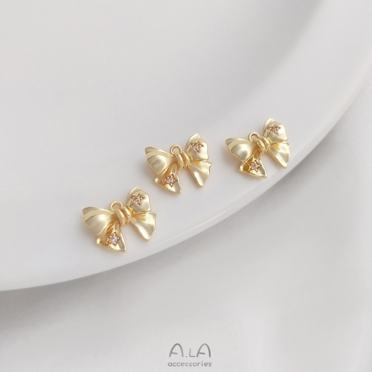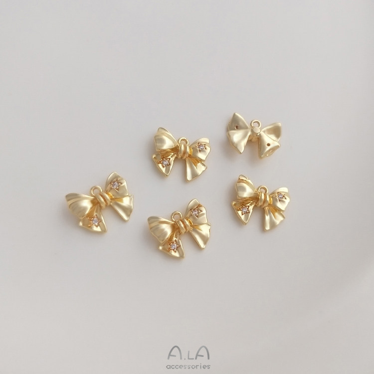 Трехмерная подвеска с цирконом с бантиком, ювелирное украшение, серьги ручной работы, браслет, 14 карат, золотой цвет, DIY