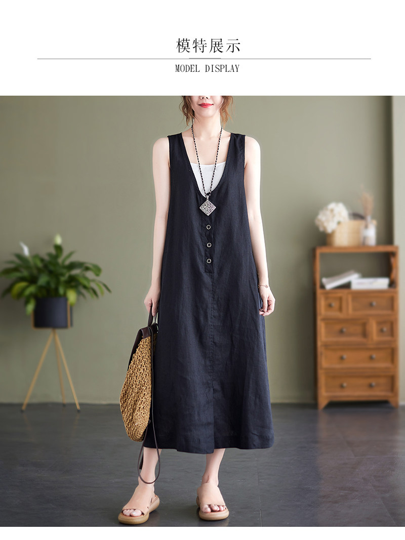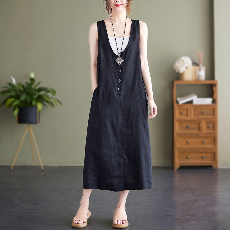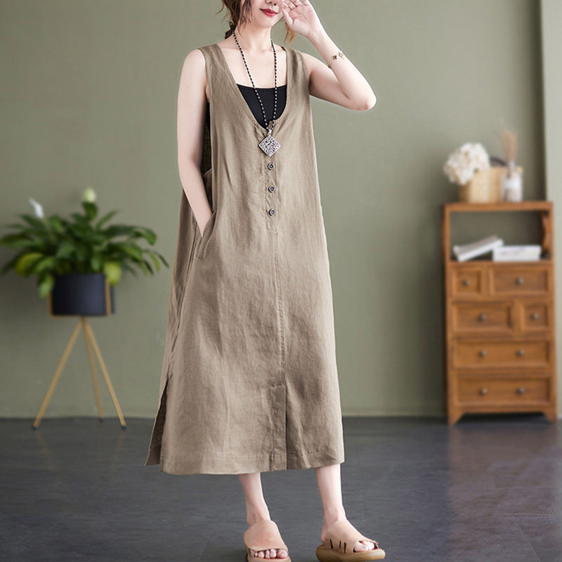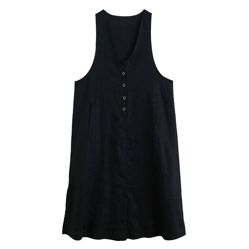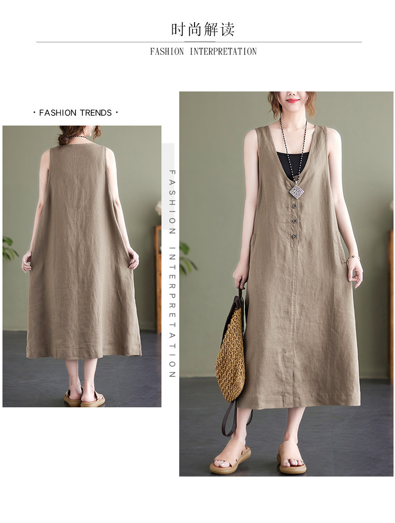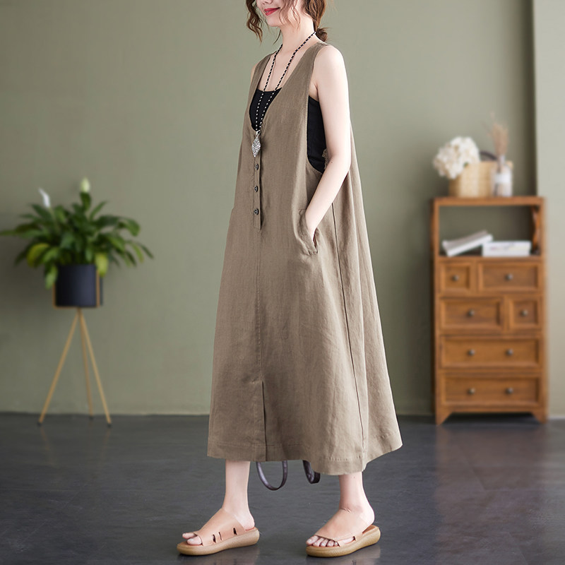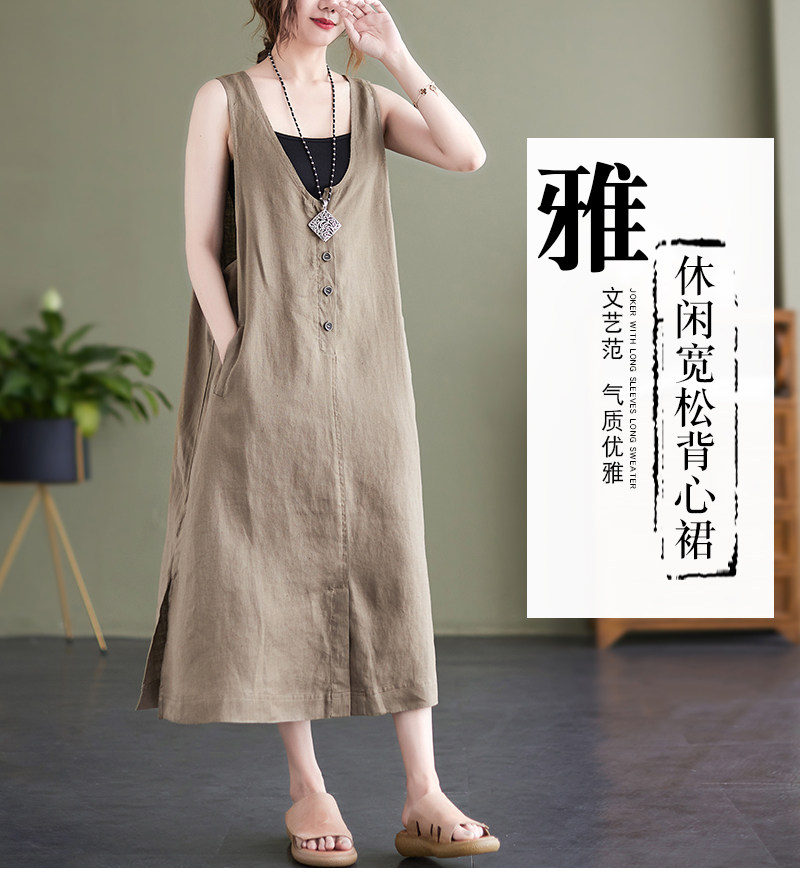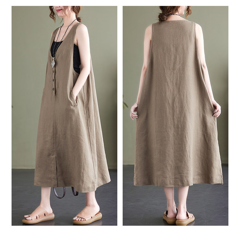 Тонкое модное платье большого размера, платье без рукавов без рукавов, летняя юбка, свободный крой, из хлопка и льна, V-образный вырез