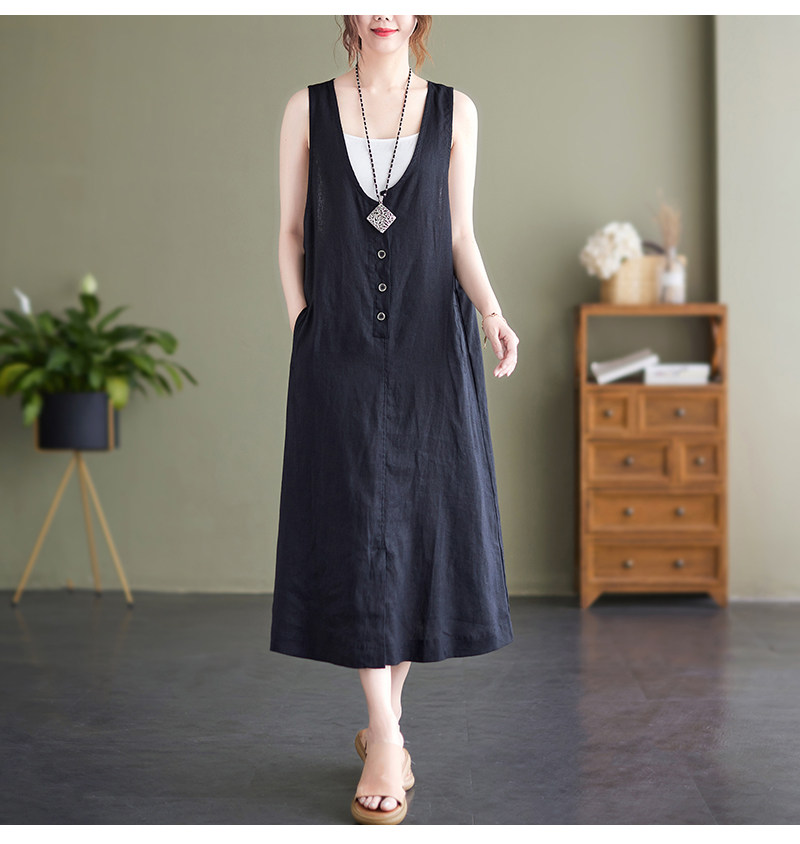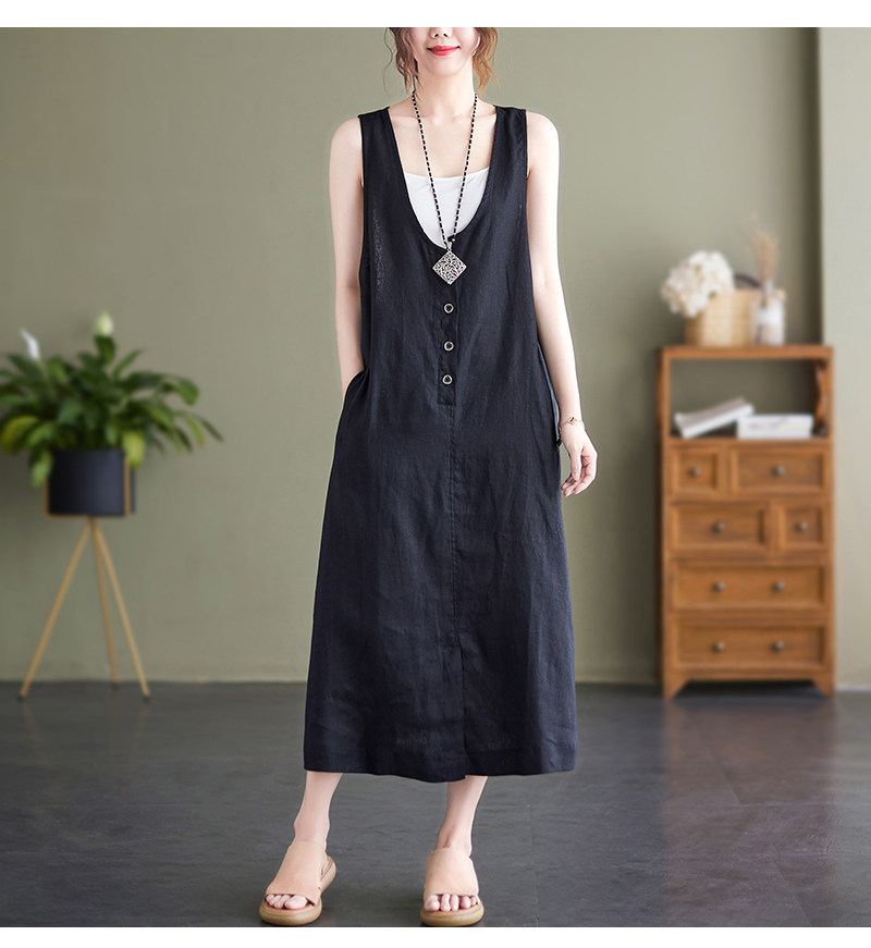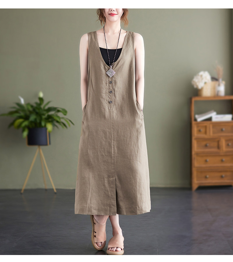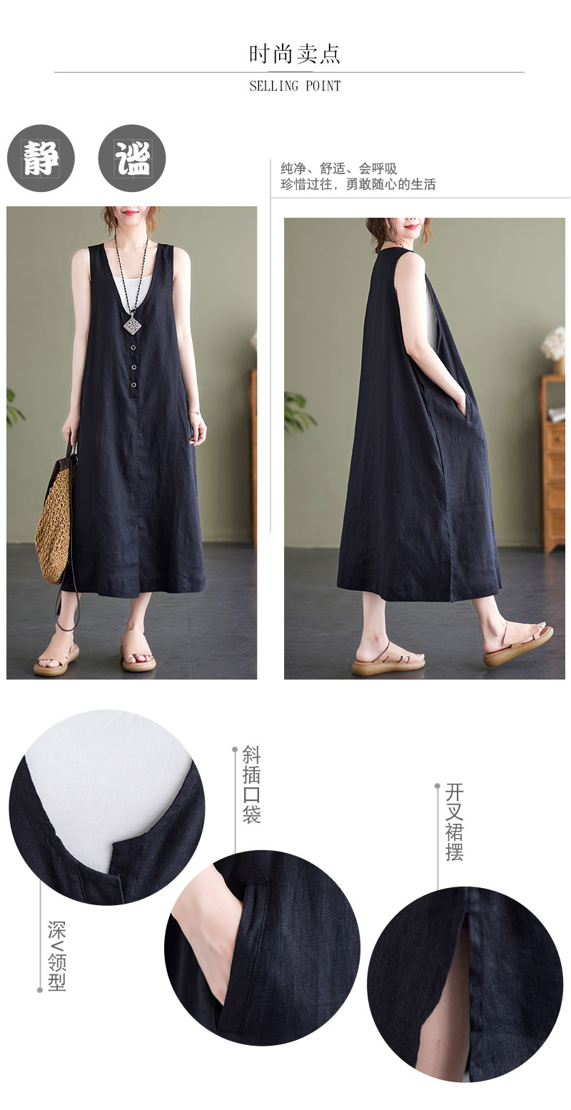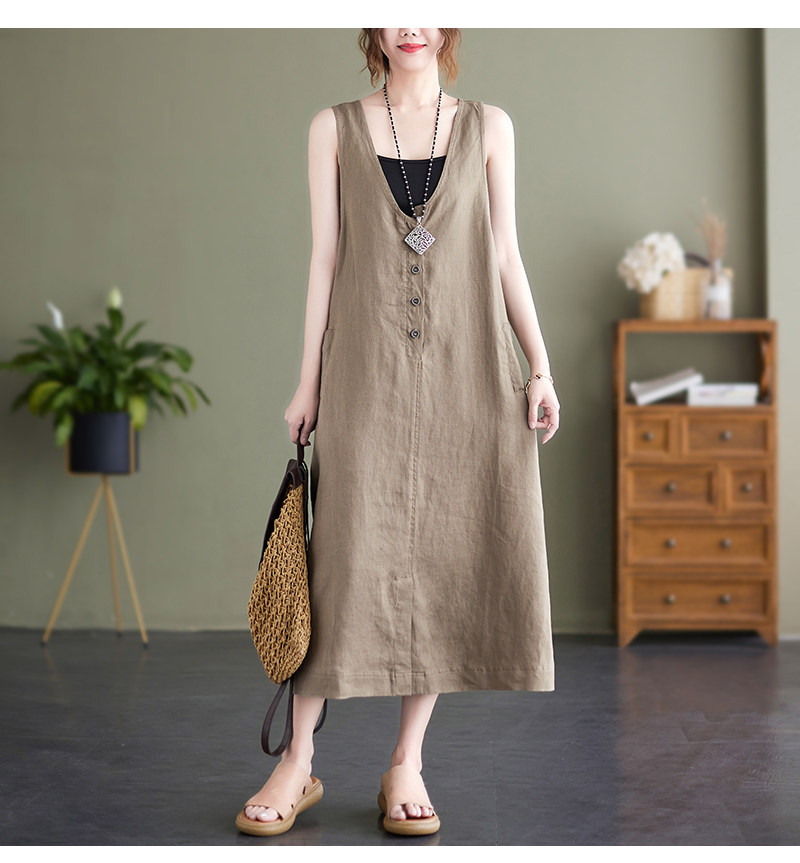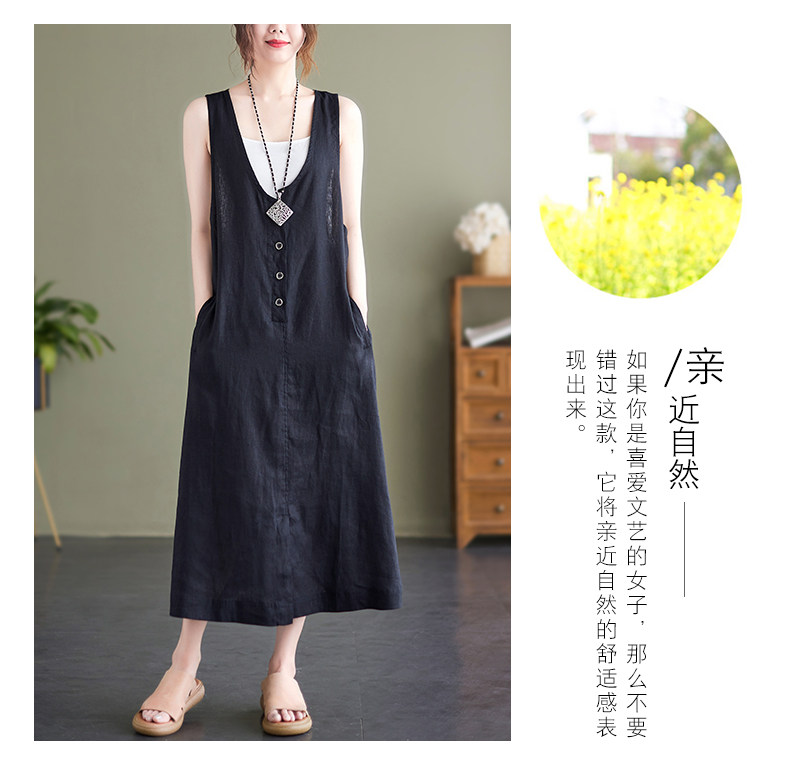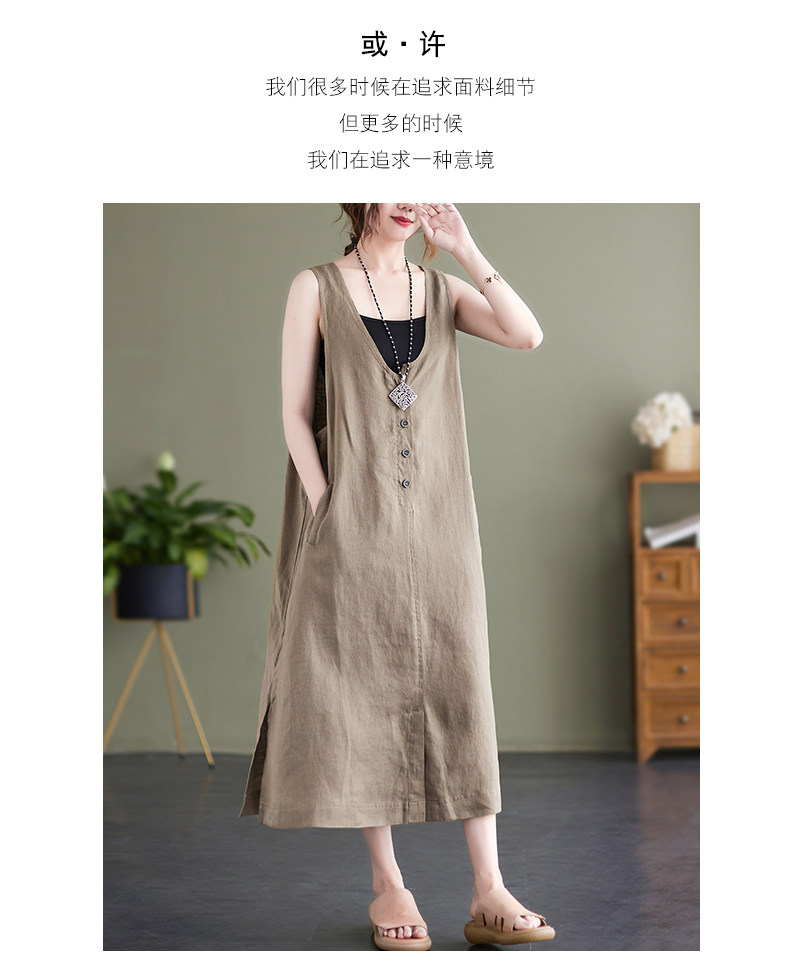Тонкое модное платье большого размера, платье без рукавов без рукавов, летняя юбка, свободный крой, из хлопка и льна, V-образный вырез