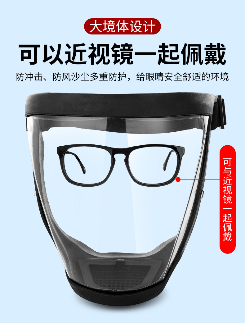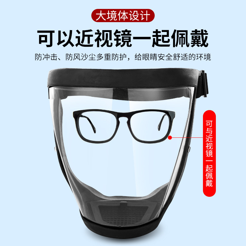 Защитная маска высокая, прозрачная высокопрофильная полная лицевая грань против пыли пыли, шлифовальный капюшон, антиэпидемический, пестицидный анти -вирусная маска