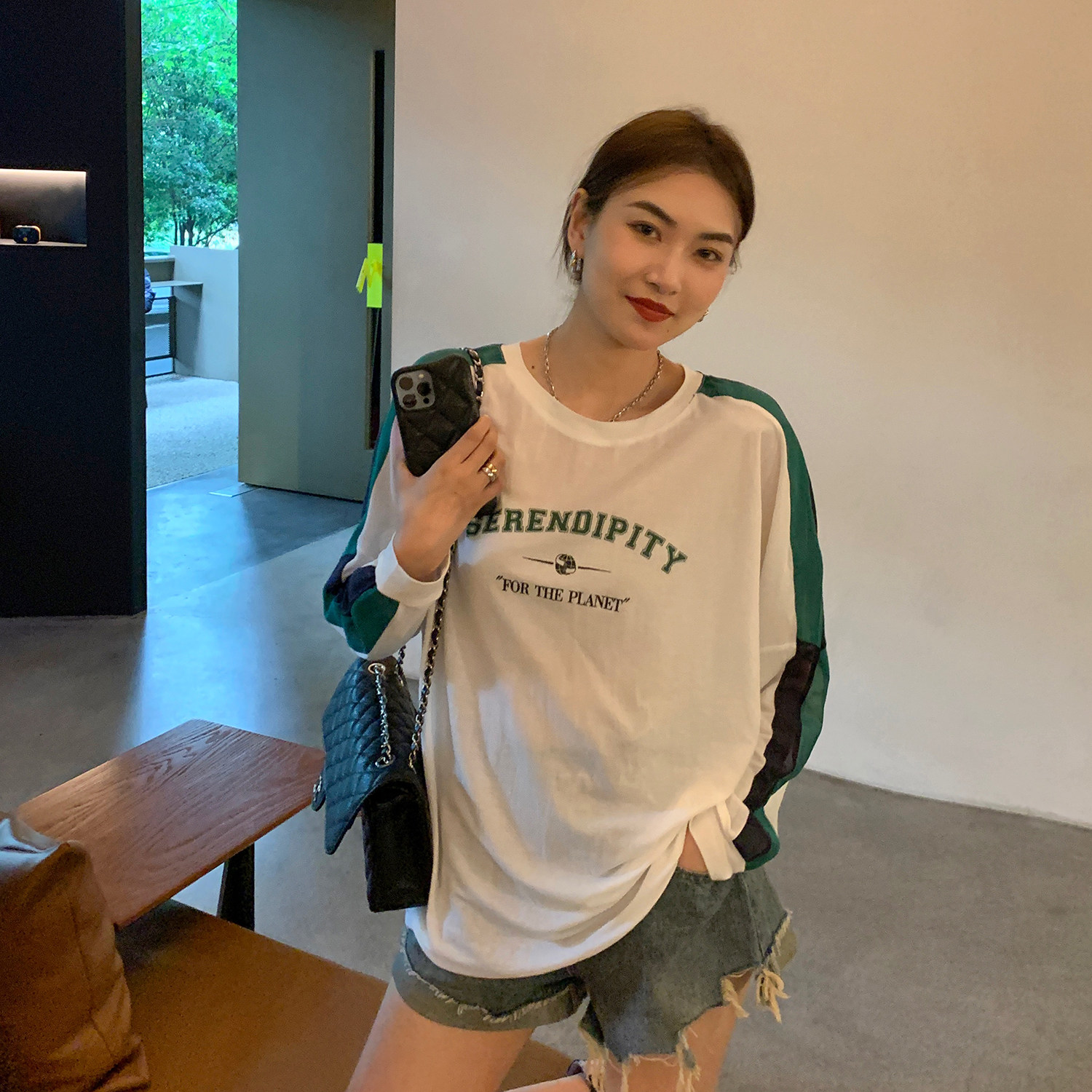 Свободная версия, показывающая ленивое и случайное состояние Хорошая терпимость, чувство зрения бумажного человека Падение плеч и рукава могут легко покрыть поклонение мясу Корпус рукава противоречит папам, чтобы создать ощущение моды