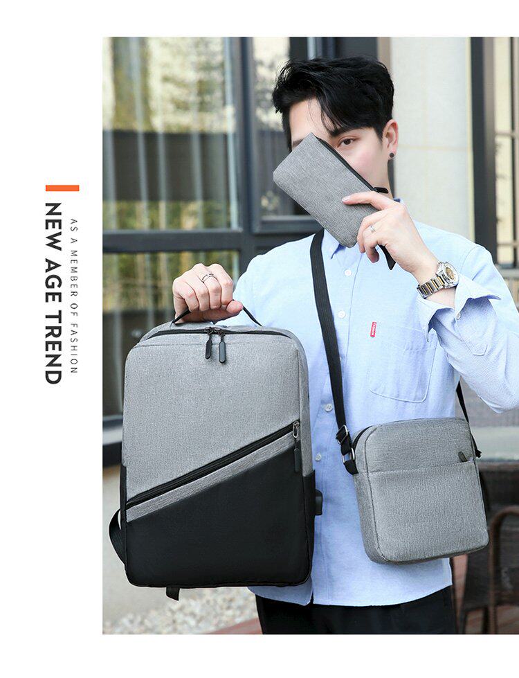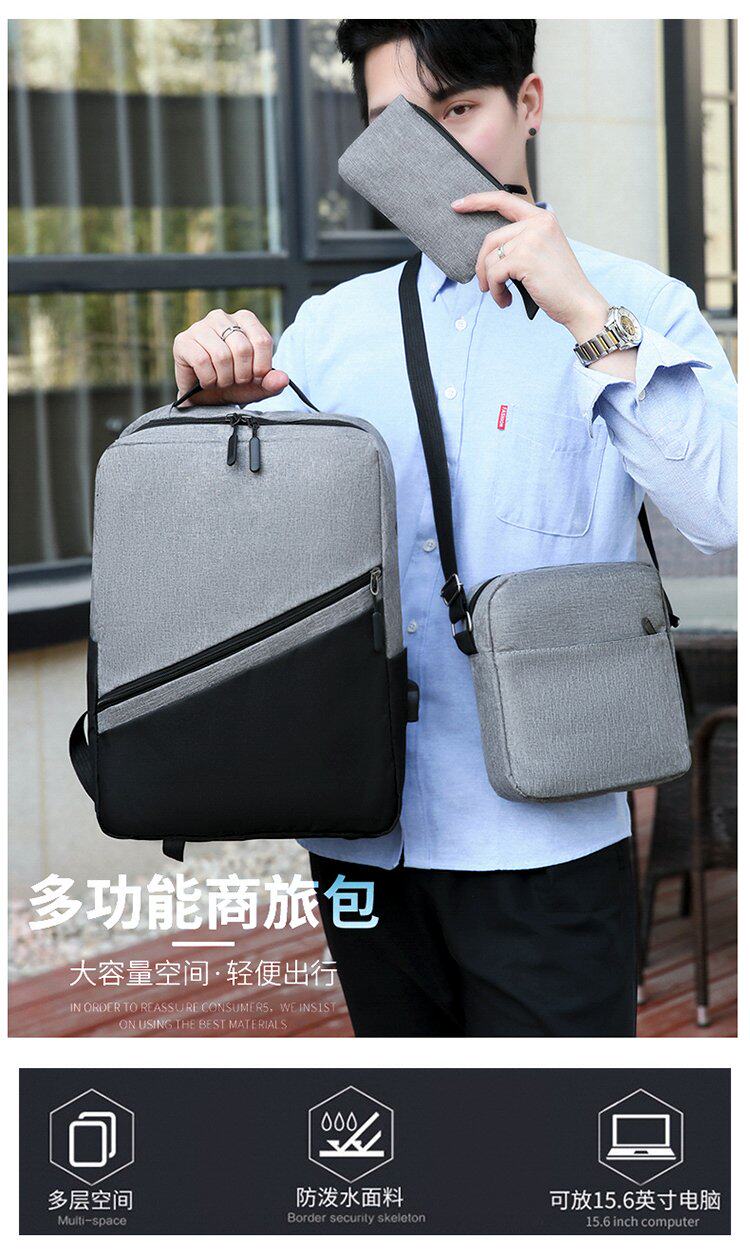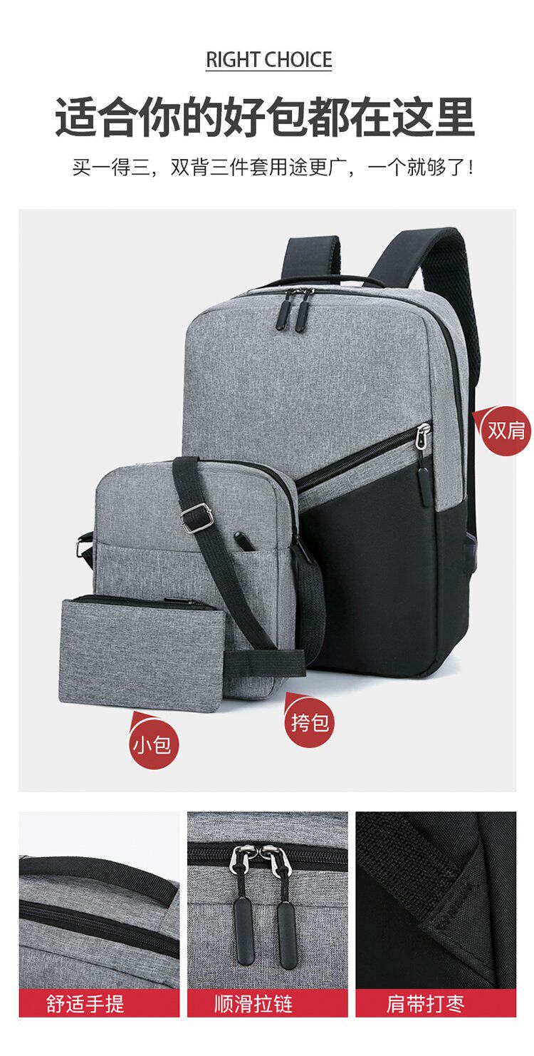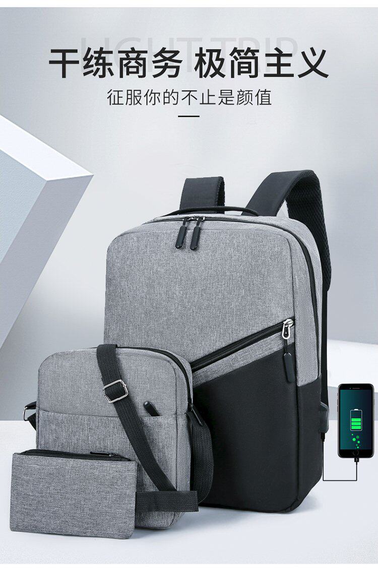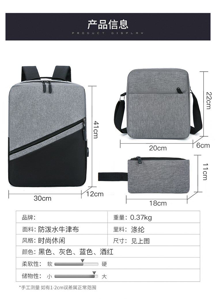 (Трансграничная торговля), рюкзак с usb-зарядкой, вместительный и большой комплект, ноутбук, ткань оксфорд, 3 предмета, бизнес-версия, простой и элегантный дизайн