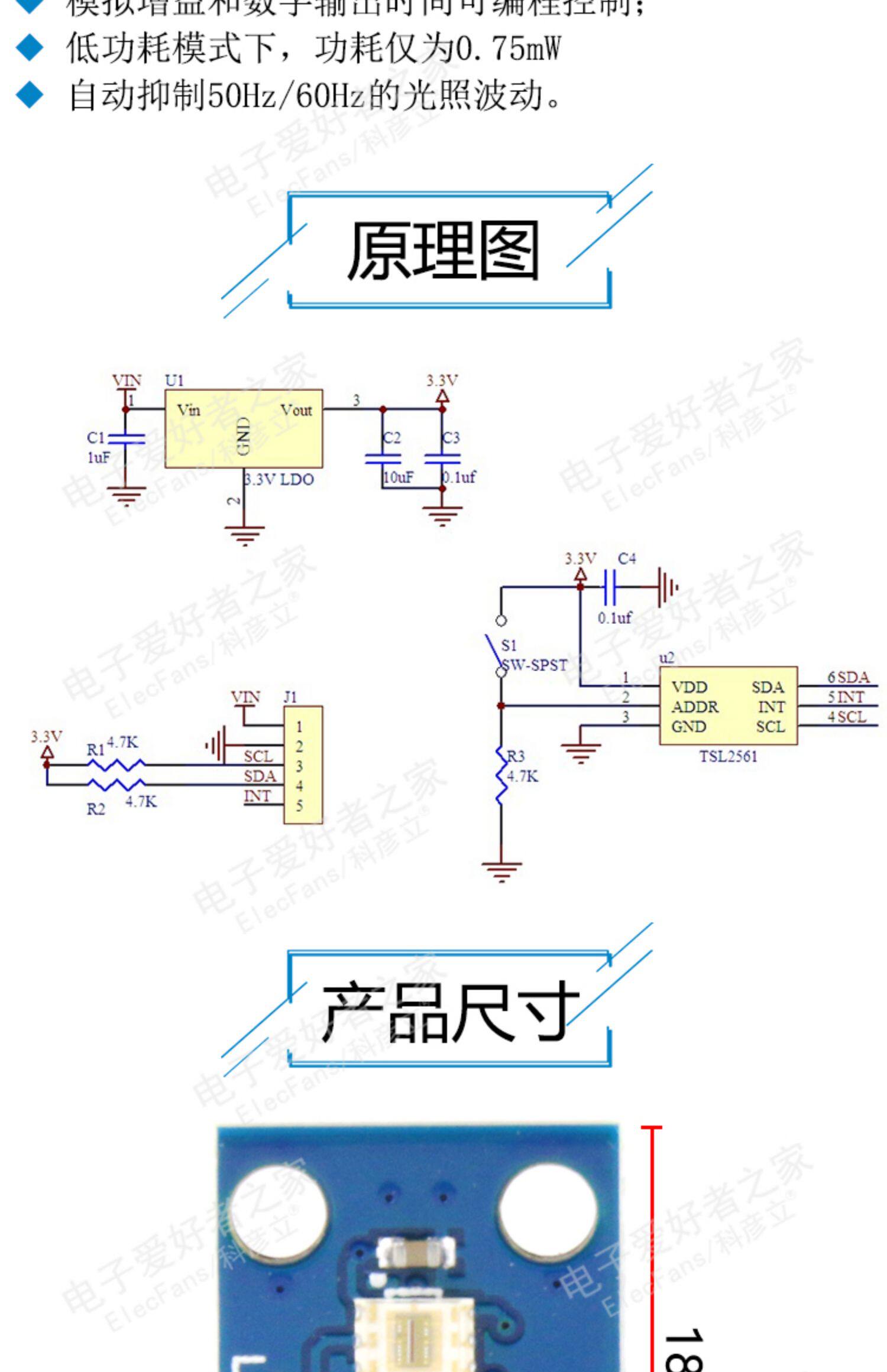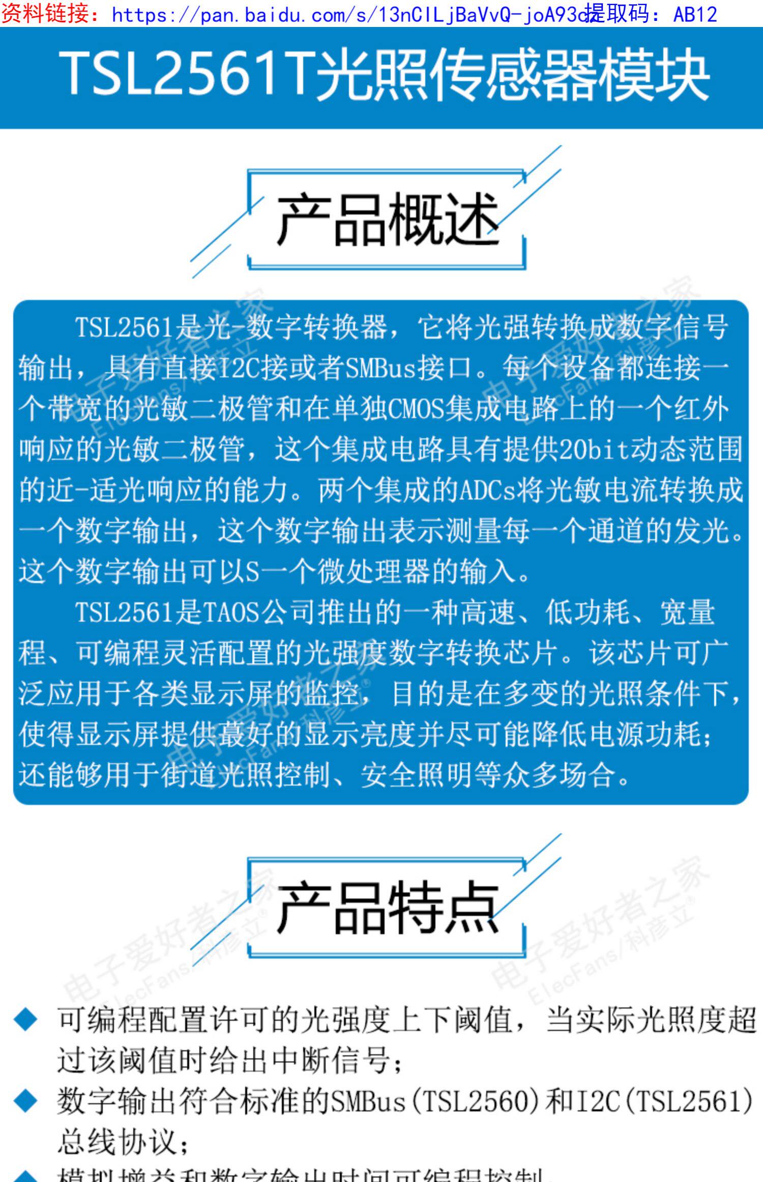 TSL2561T Датчик светового датчика Обнаружение интенсивности интенсивности света