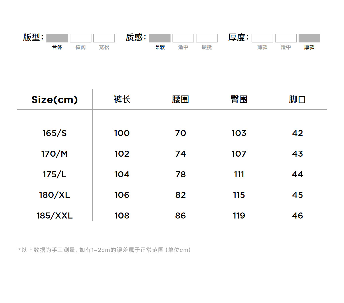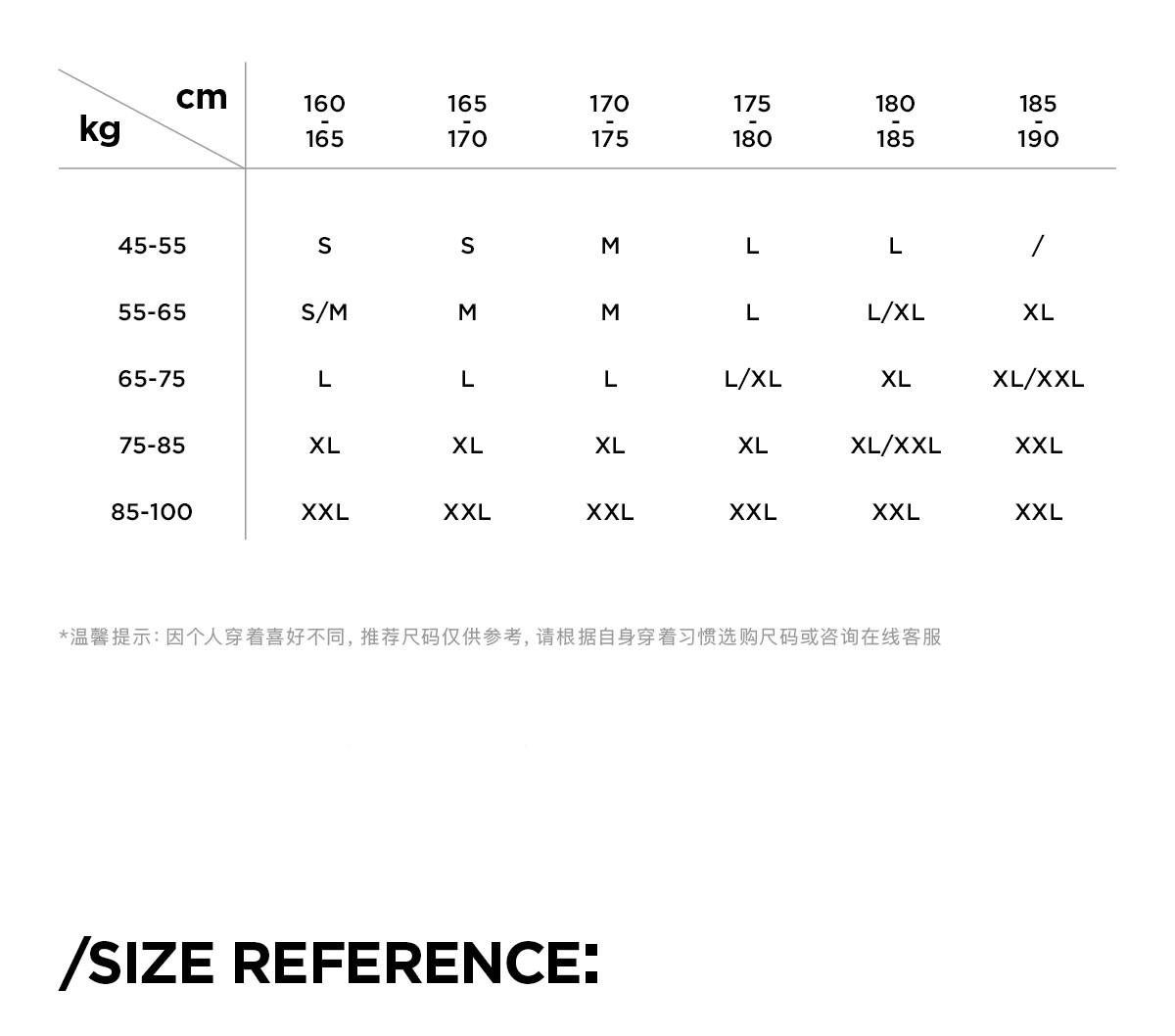 - = 185/XXL 175/L 180/XL