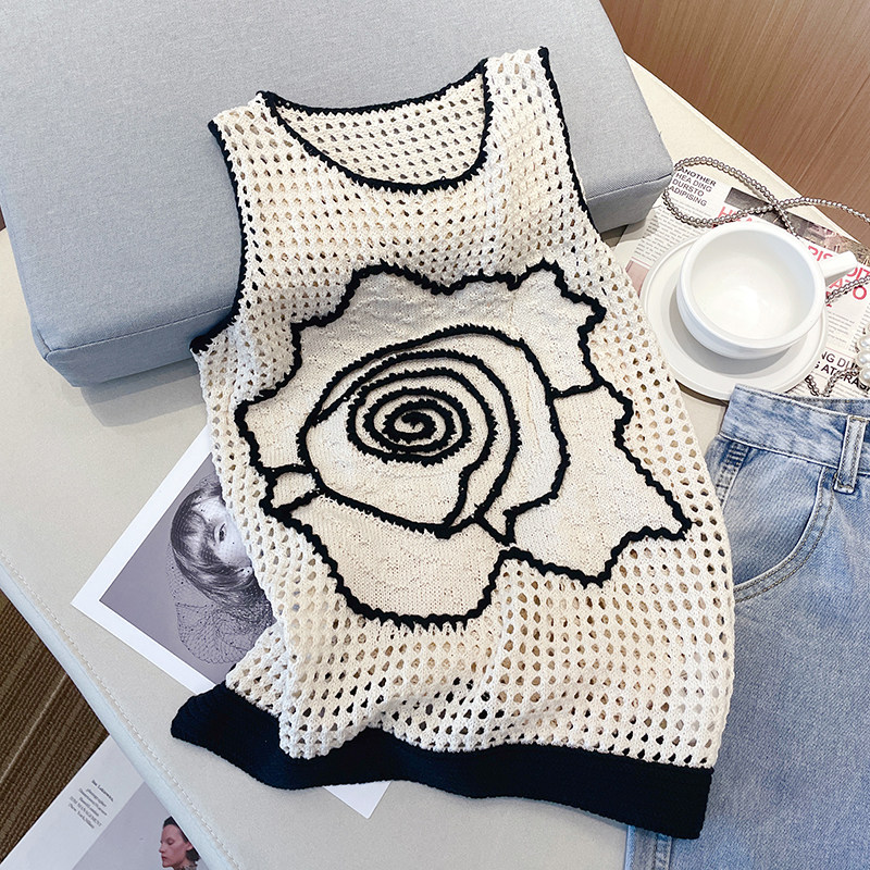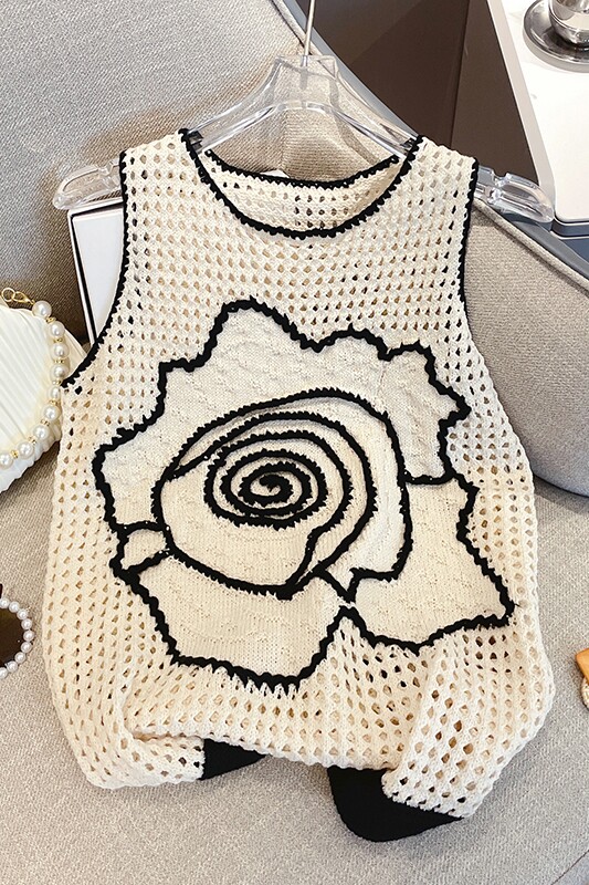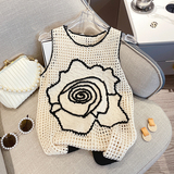 Майка топ, трикотажный дизайнерский свитер без рукавов, в стиле Шанель, оверсайз, тренд сезона