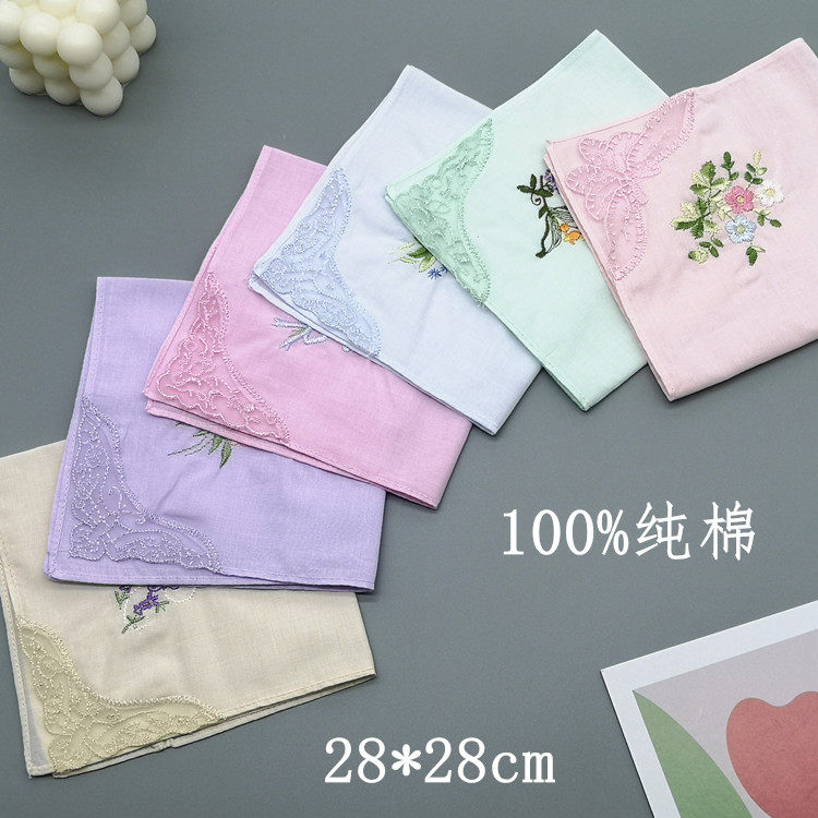 Хлопковый носовой платок, мягкий шарф, с вышивкой