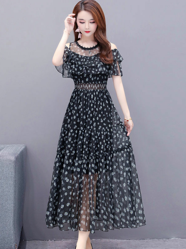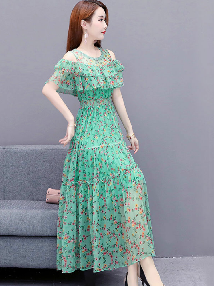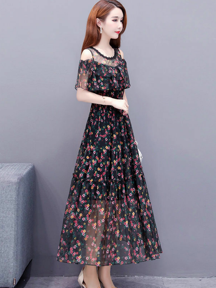 Модное длинное брендовое шифоновое летнее пляжное платье, в цветочек, длина макси, А-силуэт