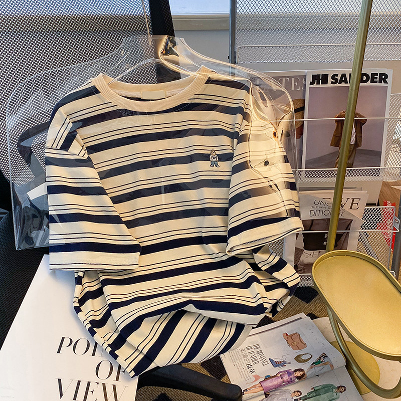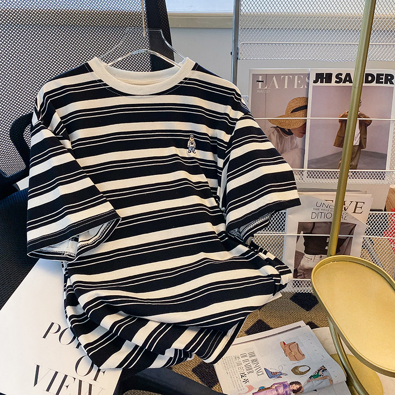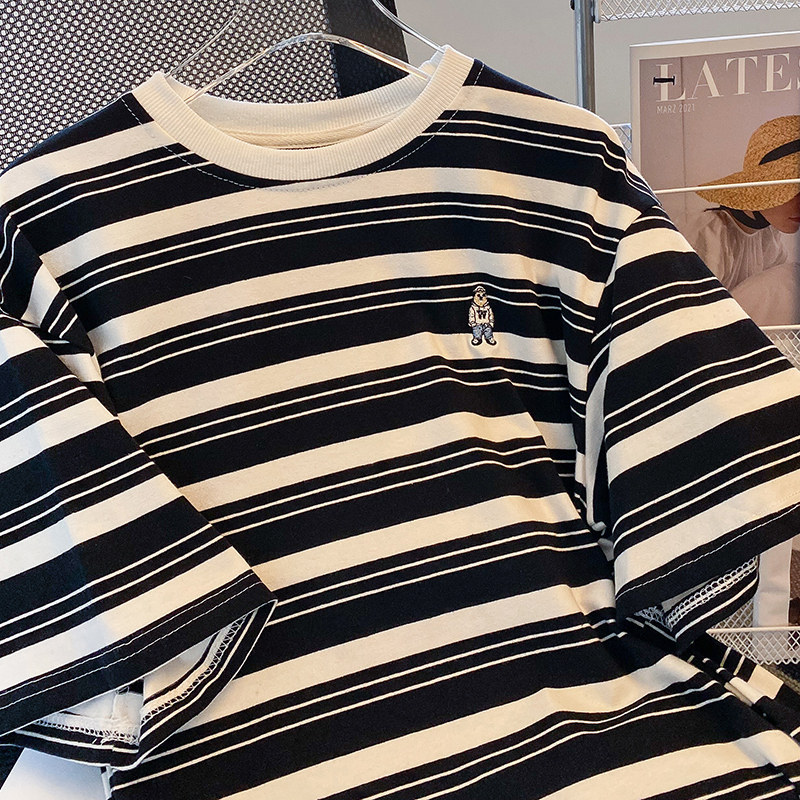 Брендовая хлопковая футболка с коротким рукавом, с вышивкой, в корейском стиле