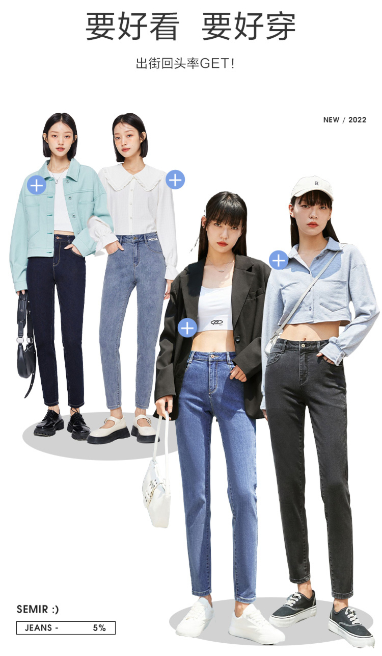 Semir, джинсы, приталенные ретро осенние штаны, в корейском стиле