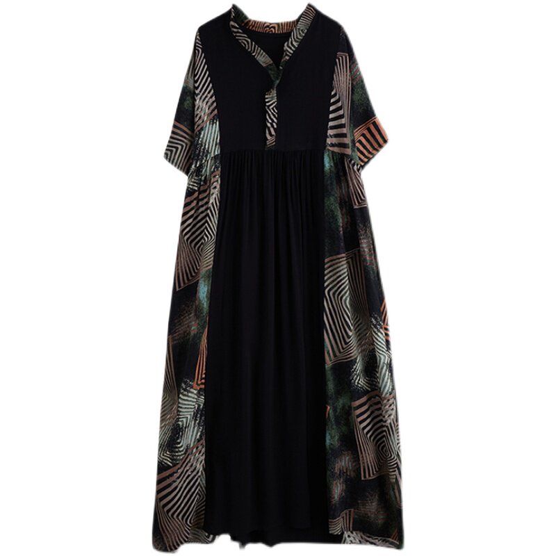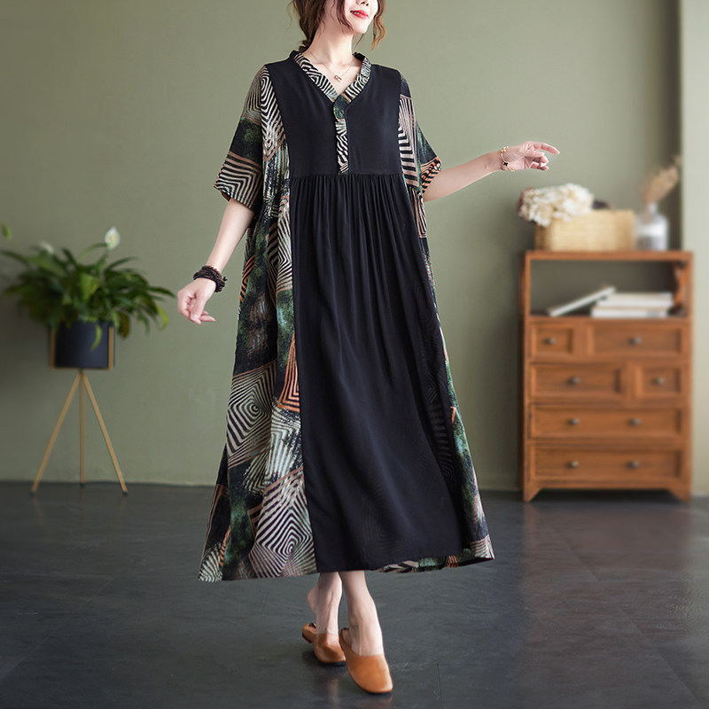 Платье с рукавами для отдыха, платье большого размера, юбка, V-образный вырез, большой размер