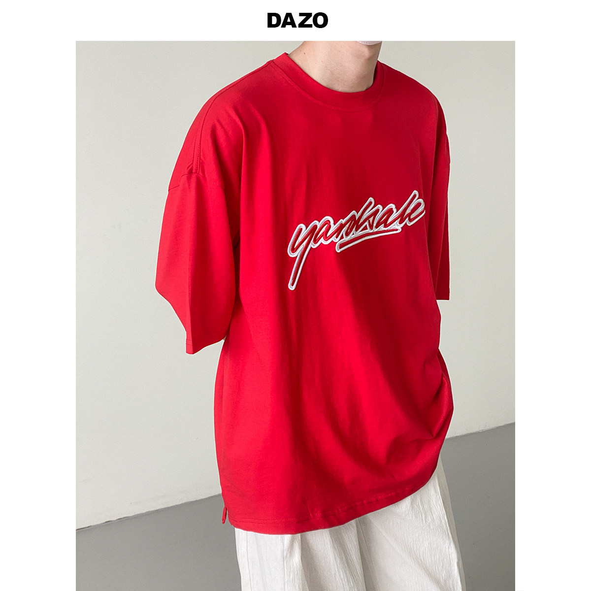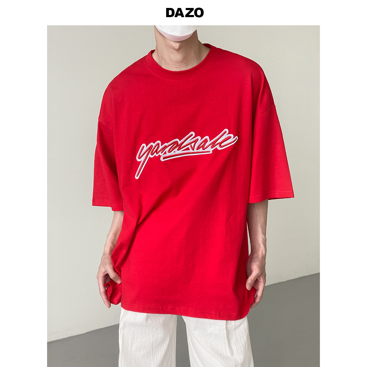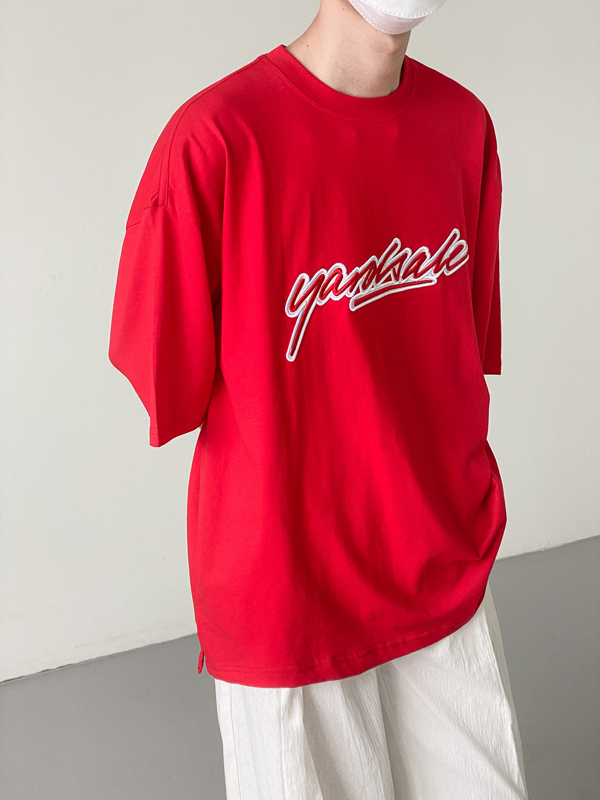 Tide, красная футболка с коротким рукавом, с вышивкой, свободный крой