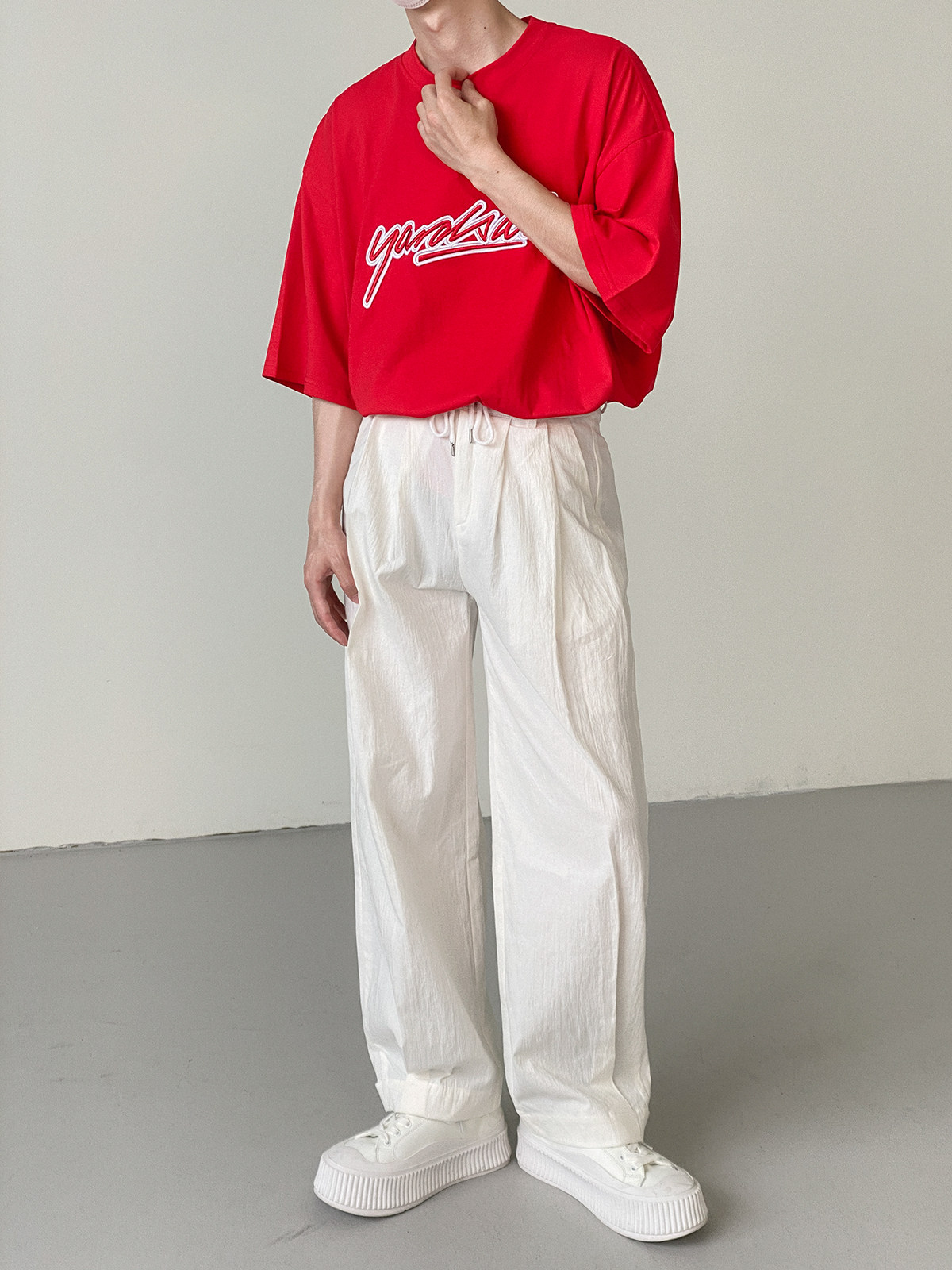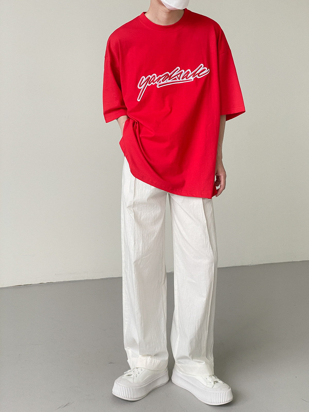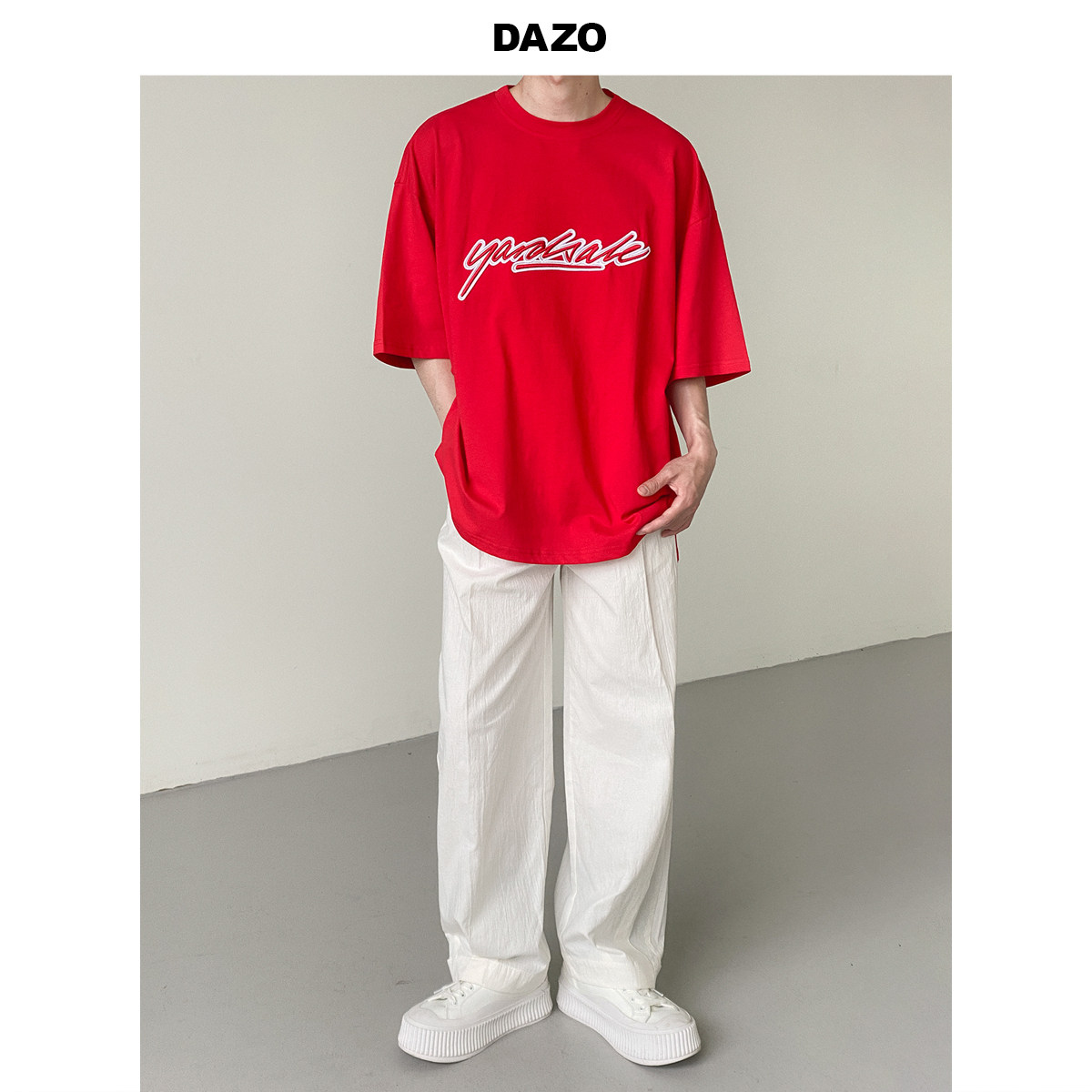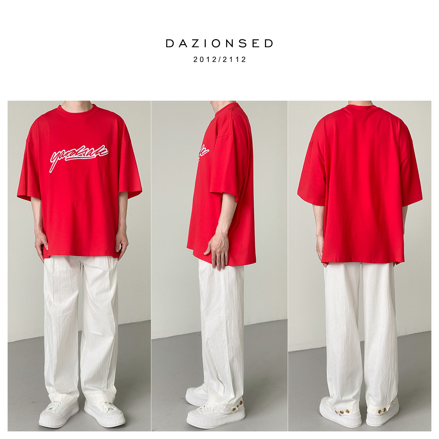 Tide, красная футболка с коротким рукавом, с вышивкой, свободный крой