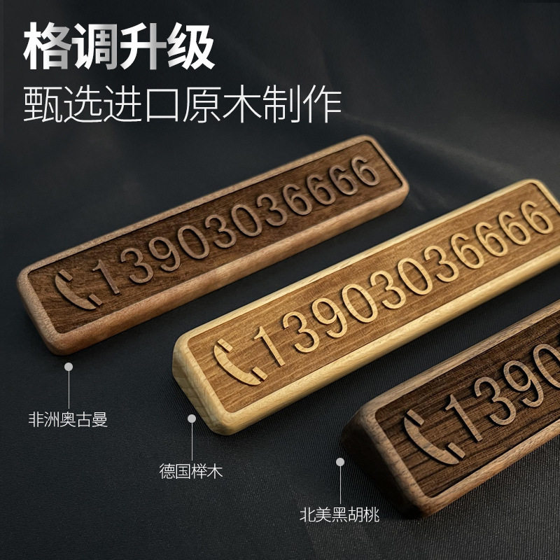 Автомобильные украшения, простая автомобильная карта для перемещения автомобиля, движущийся номерной знак, черный орех, деревянный креативный временный номерной знак для парковки телефона