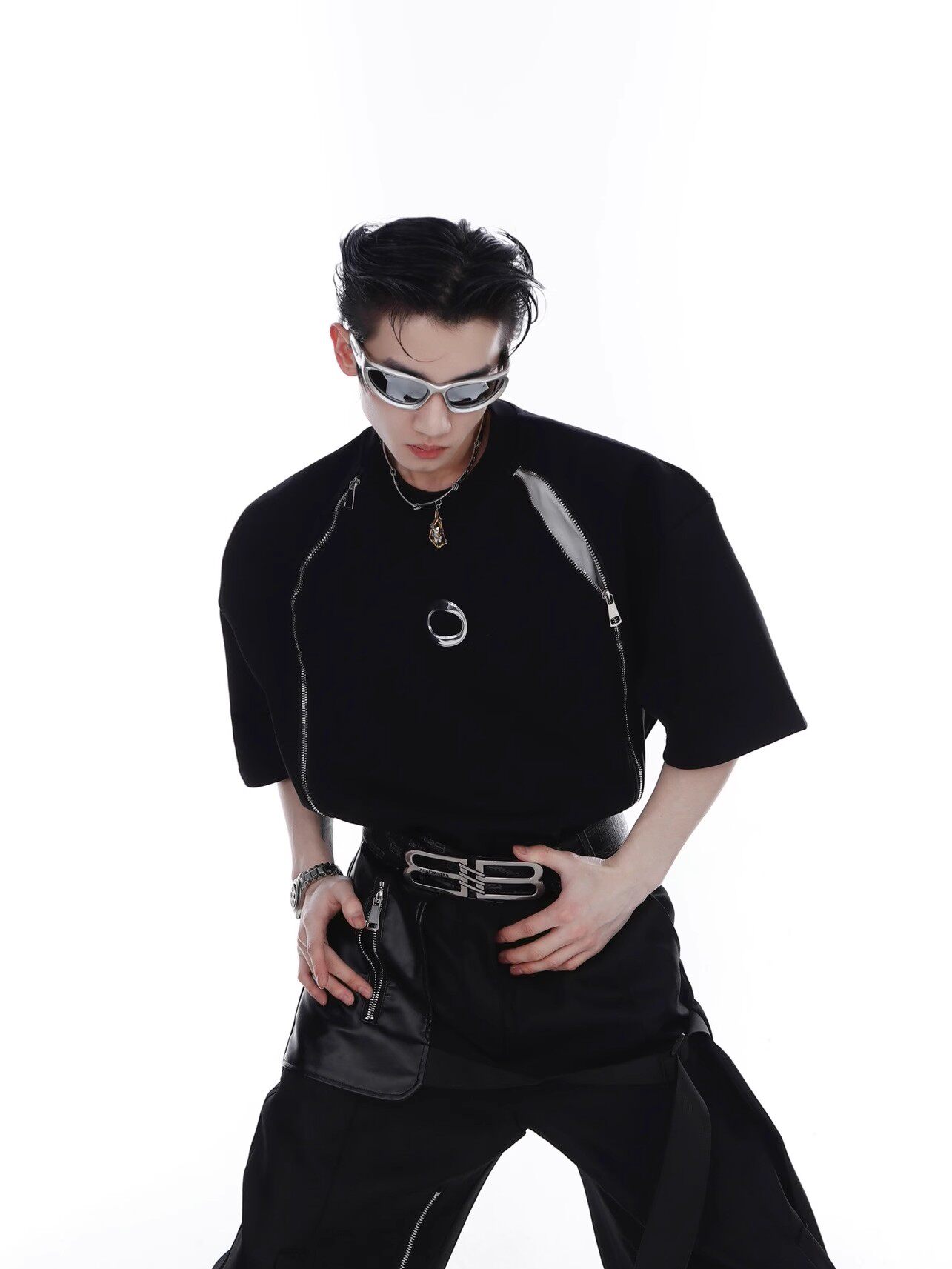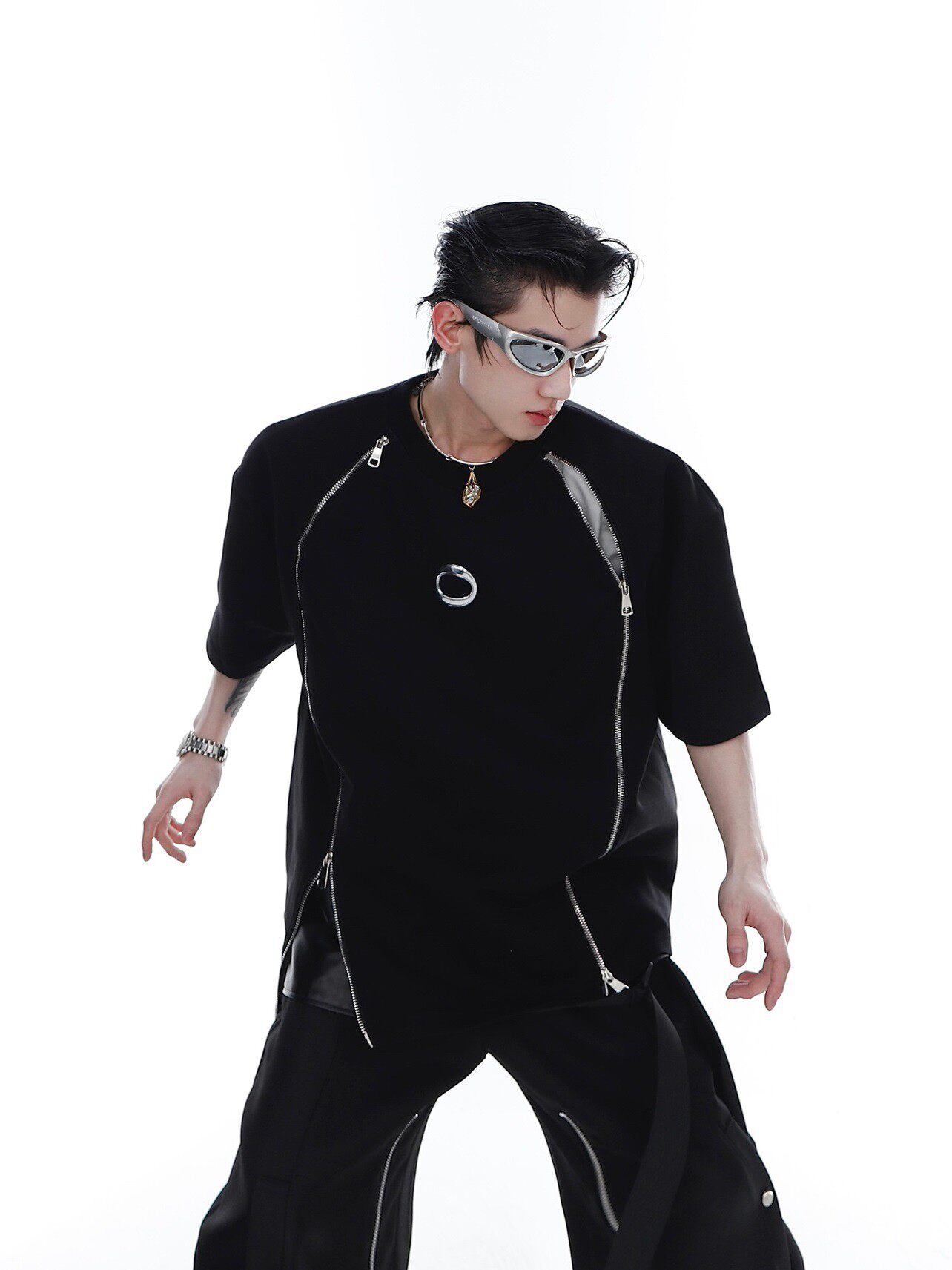 Небольшая дизайнерская брендовая летняя трехмерная футболка с коротким рукавом с молнией, в американском стиле, тренд сезона, изысканный стиль