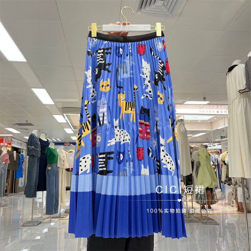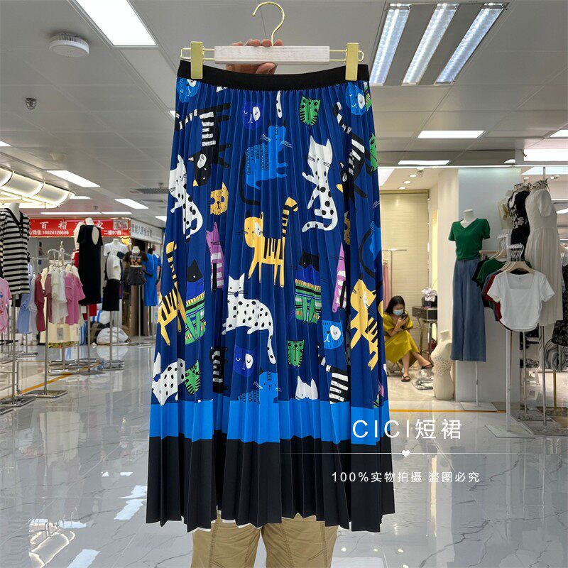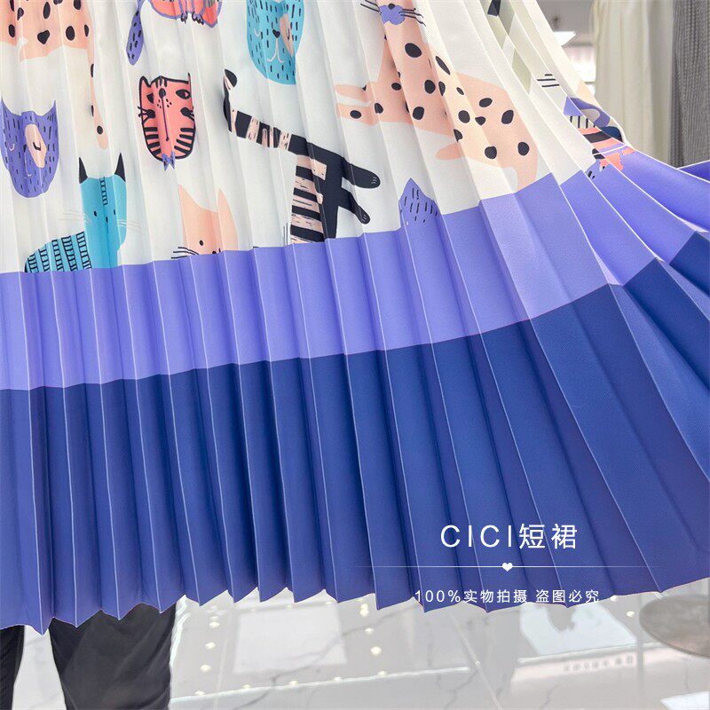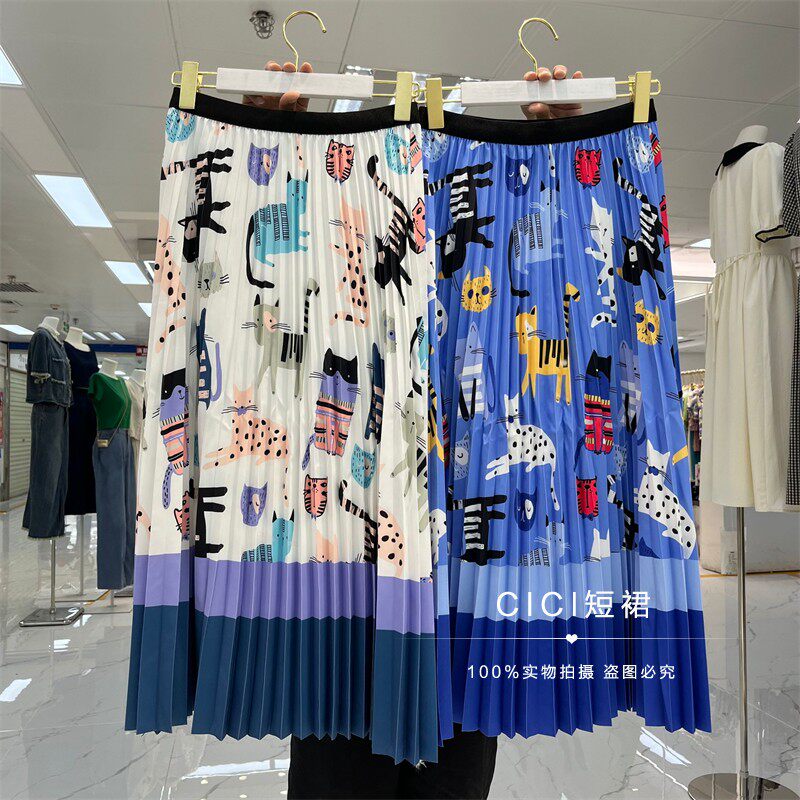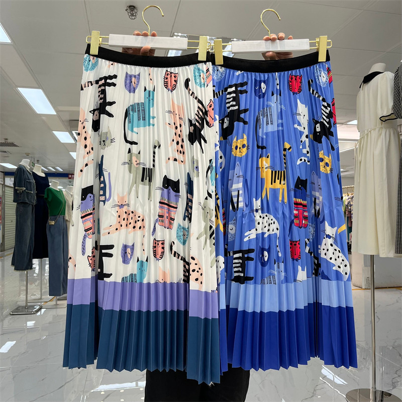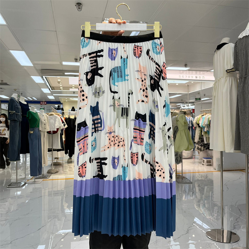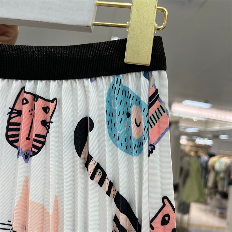 Мультяшный модный орган, длинная юбка, кот, принт, А-силуэт