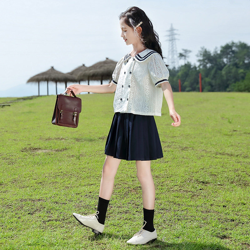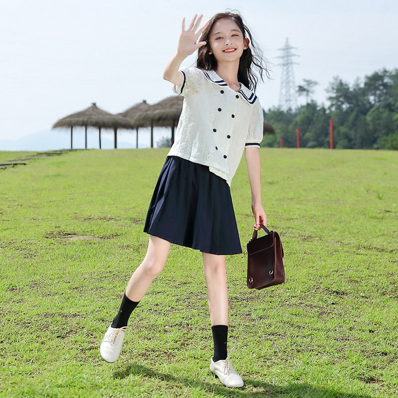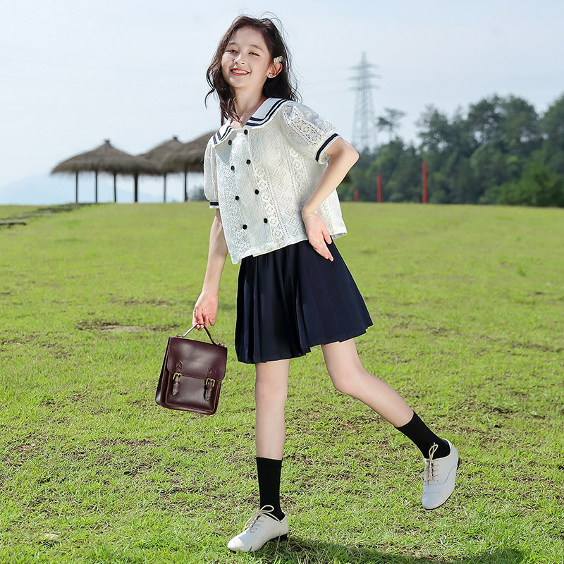 Комплект, юбка, летняя летняя одежда, коллекция 2023, подходит для подростков, в западном стиле, короткий рукав, 12 лет