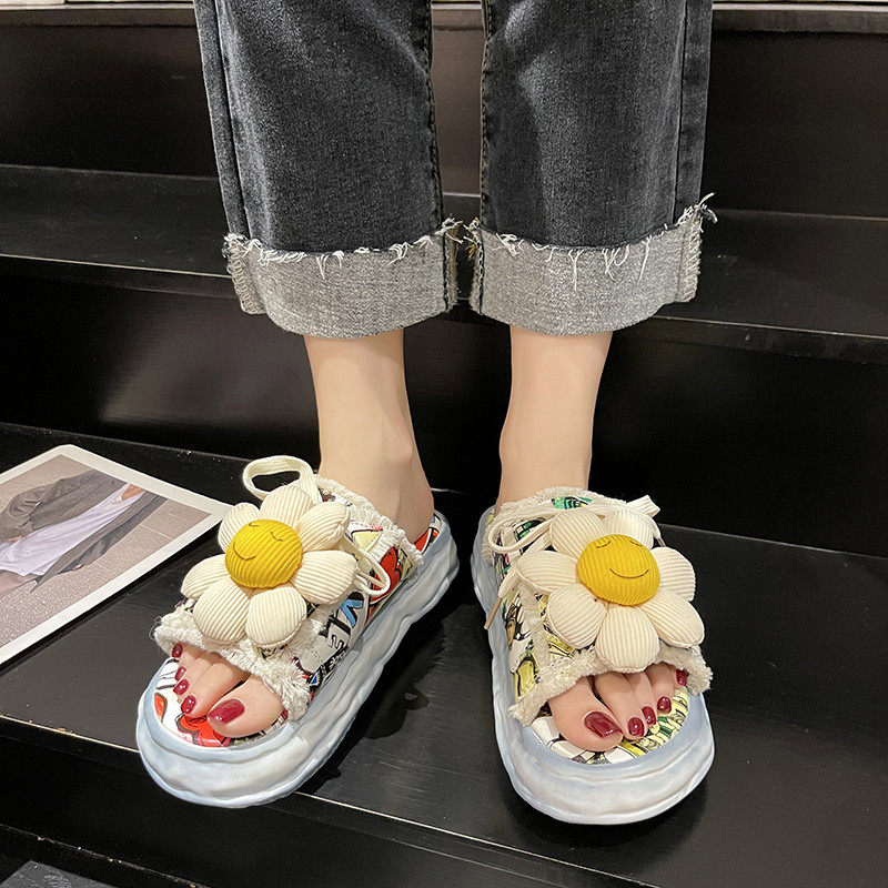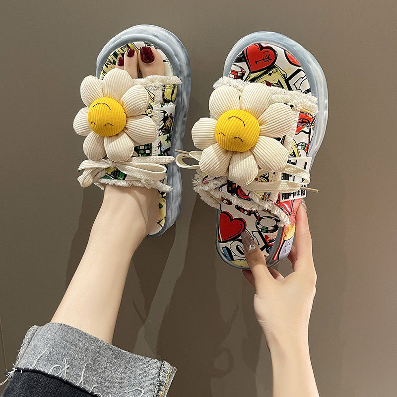 Тапочки, милая модная пляжная обувь на платформе, коллекция 2022, в цветочек, популярно в интернете, городской стиль