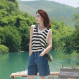 Трикотажный жилет, летняя майка топ, подходит для подростков, свободный крой, оверсайз, V-образный вырез