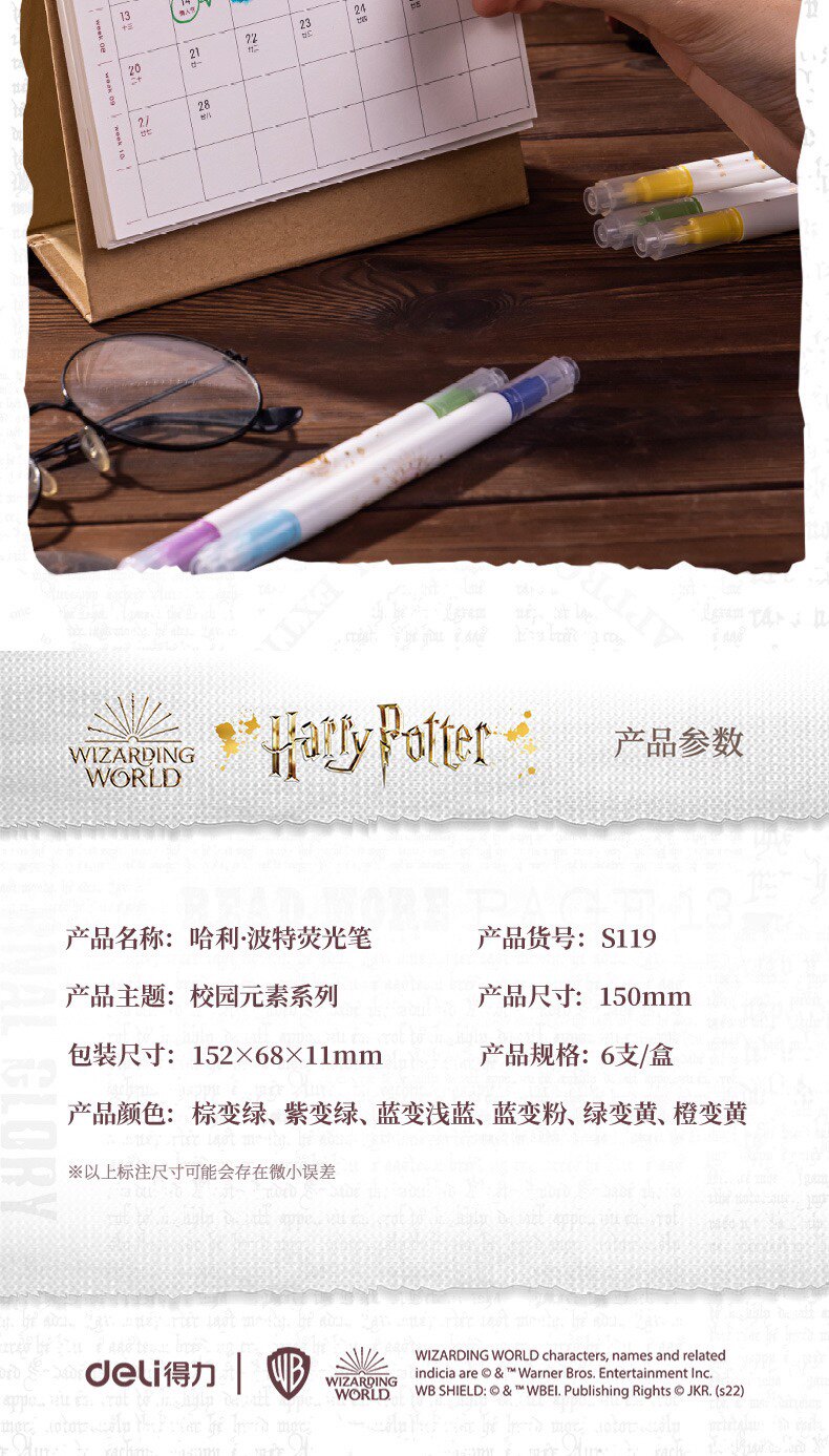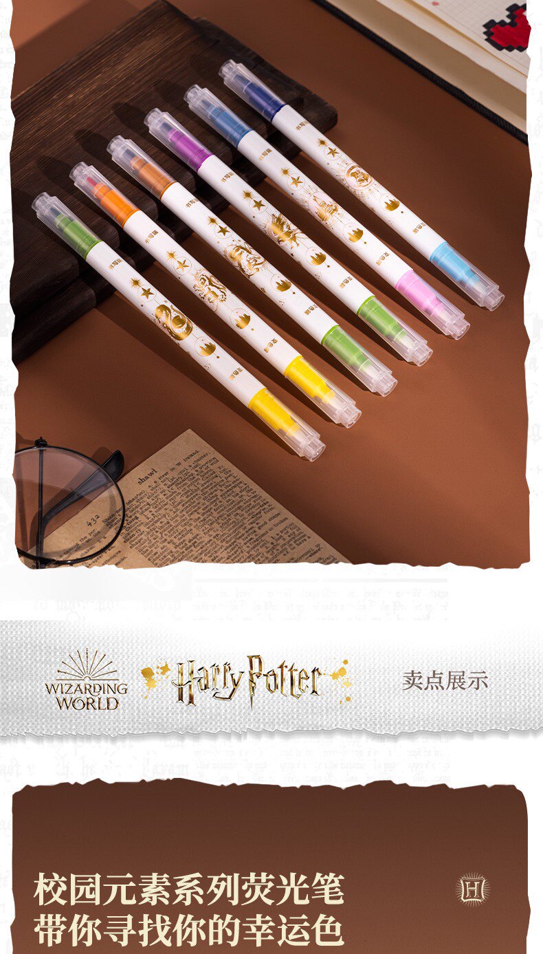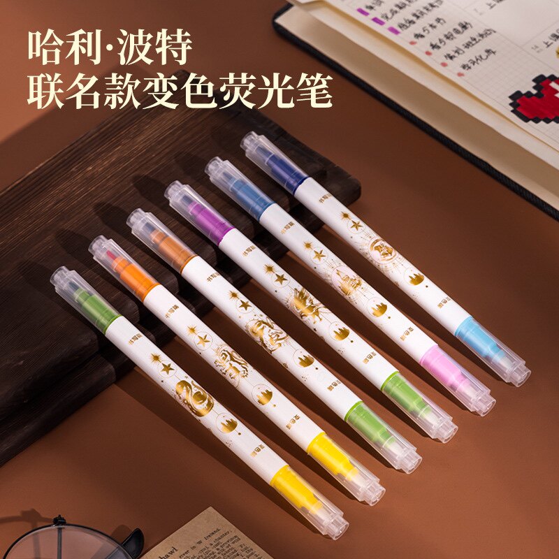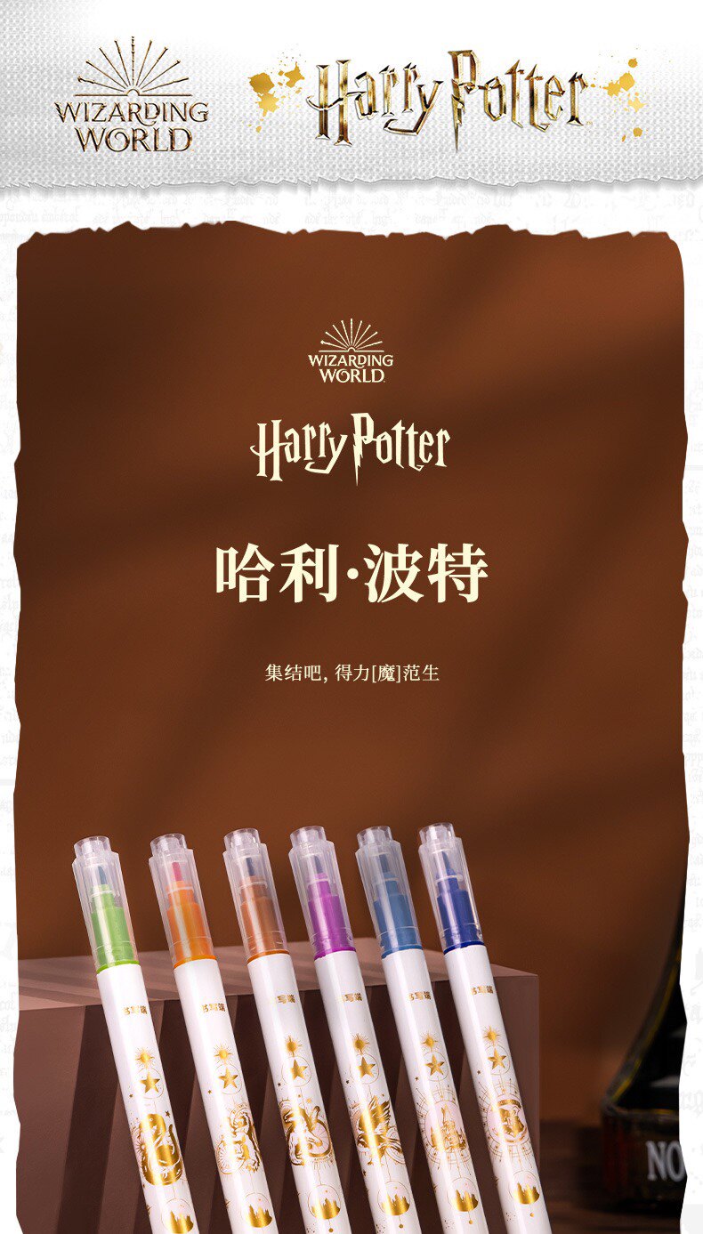 Гарри Поттер подлинный IP Объединенные студенческие канцелярские товары изменение флуоресцентных заметок Pen Pen 6 Цветный набор