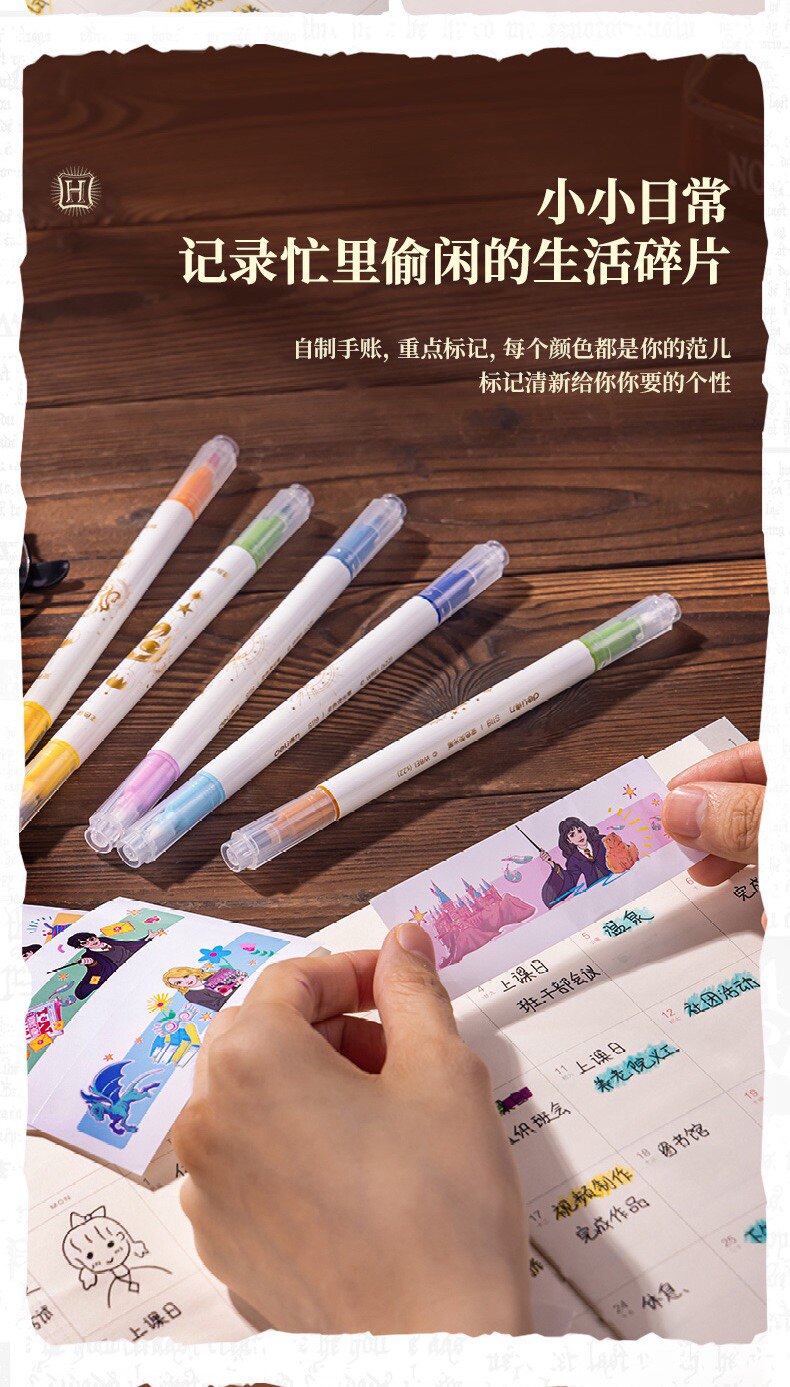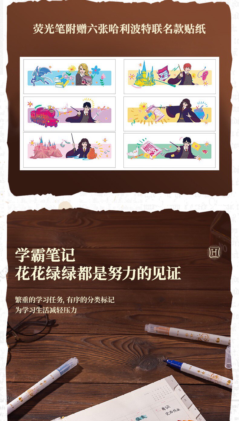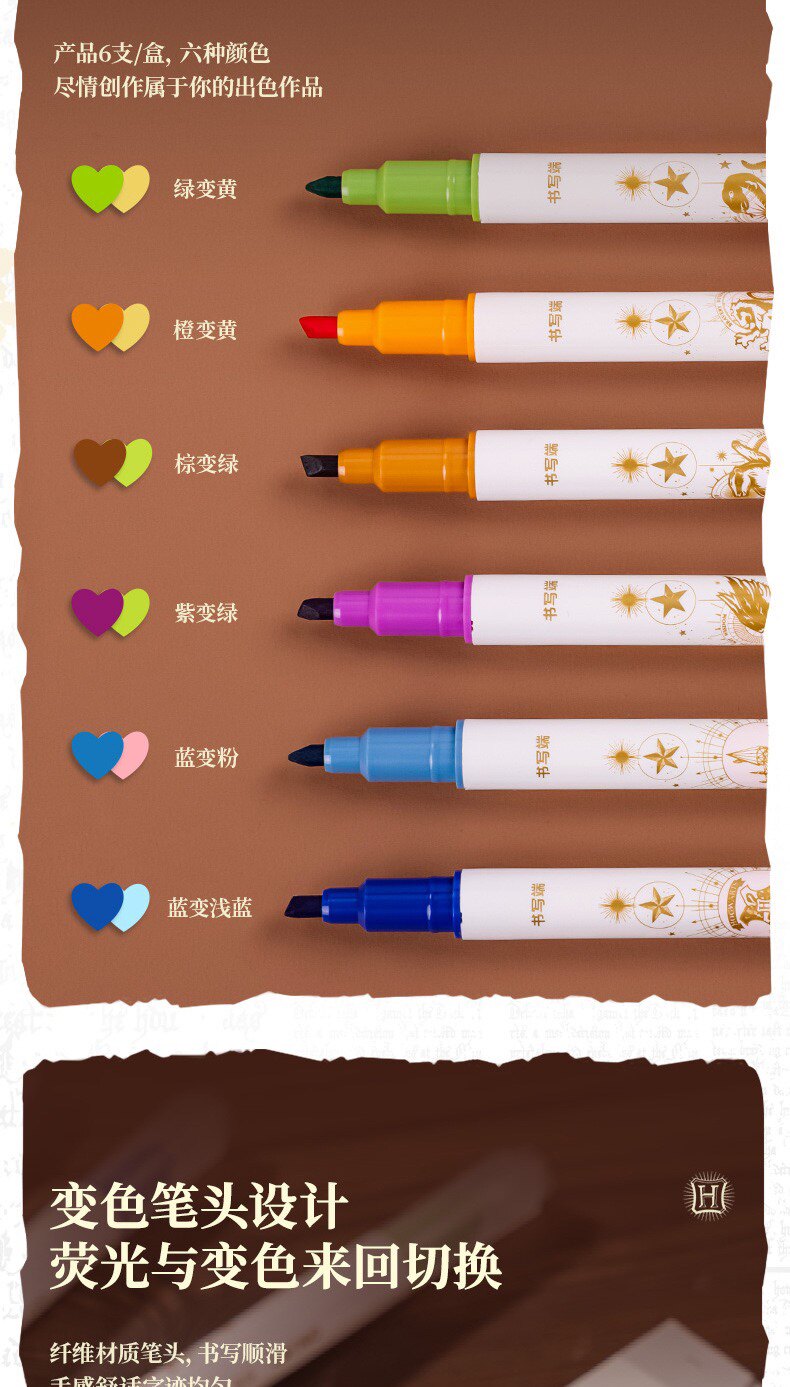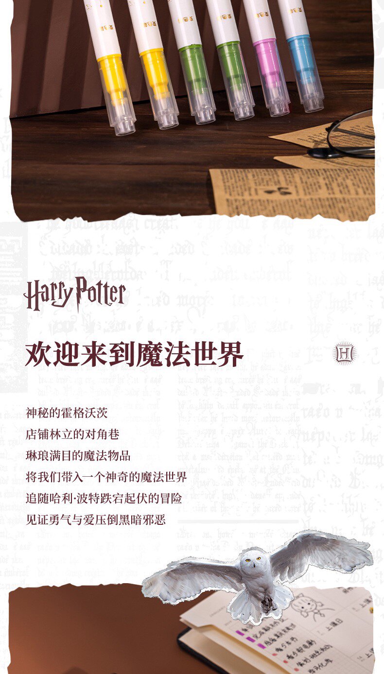 Гарри Поттер подлинный IP Объединенные студенческие канцелярские товары изменение флуоресцентных заметок Pen Pen 6 Цветный набор