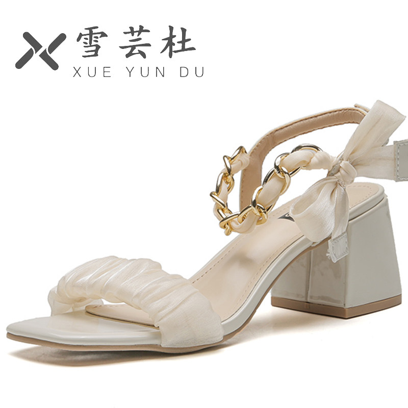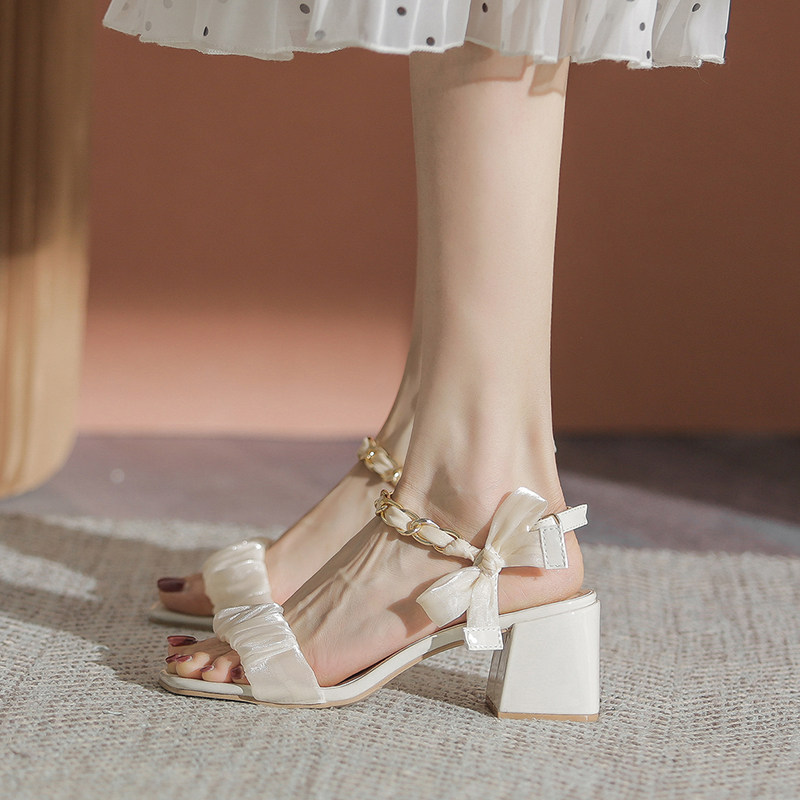 Бежевые сандалии, летняя обувь с бантиком на высоком каблуке, коллекция 2022