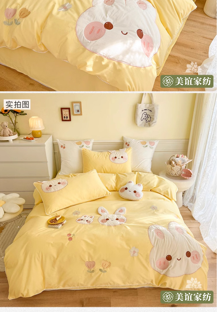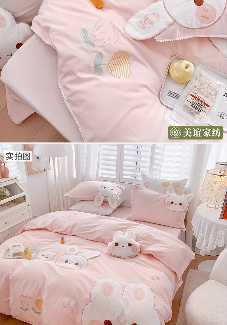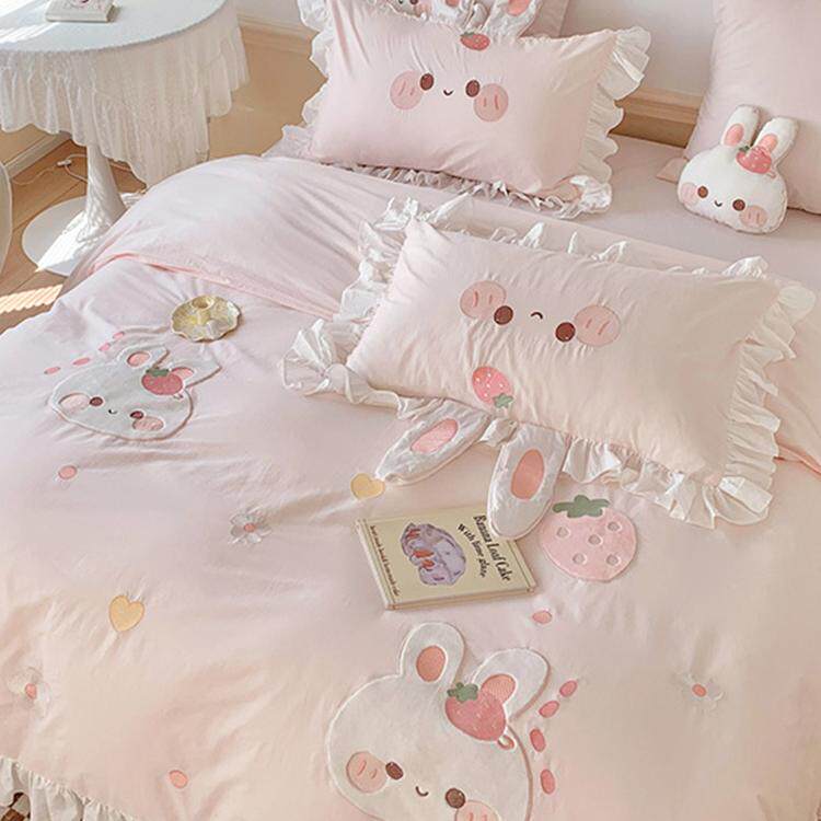 Милый кролик, хлопковый комплект, хлопковая мягкая детская простыня, покрывало, 4 предмета